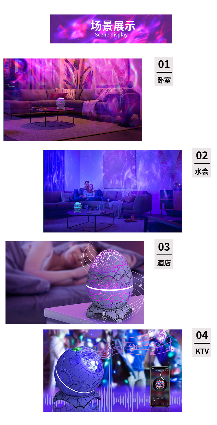 국경 공룡 계란 별이 빛나는 하늘 램프 갤럭시 성운 오로라 프로젝터 램프 블루투스 음악 별이 빛나는 오로라 야간 조명