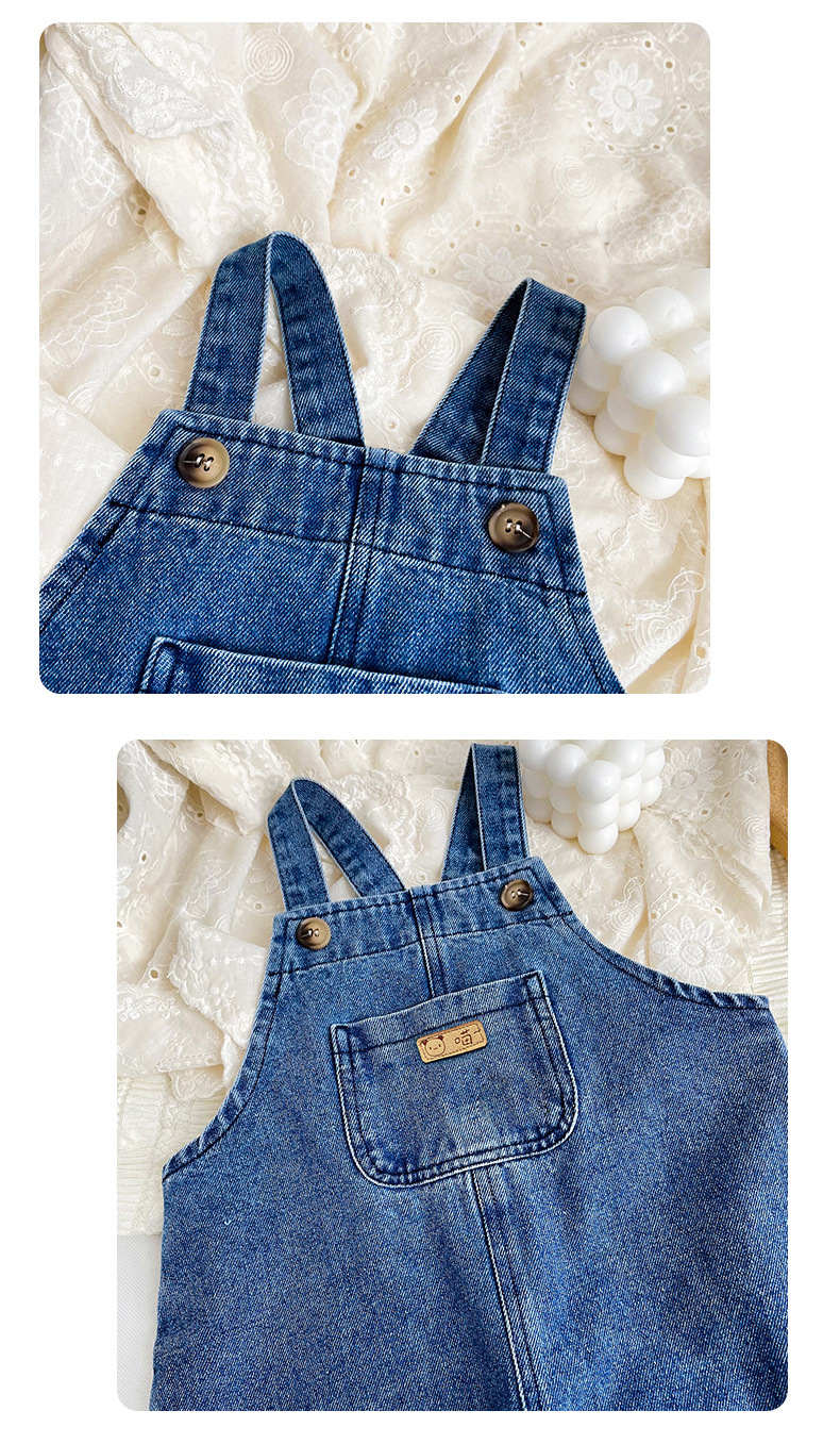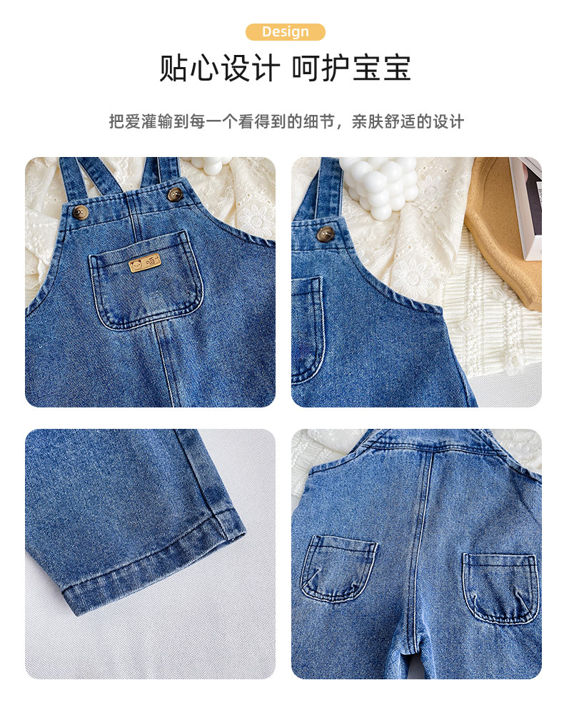 카이첸 아동복 어린이 데님 멜빵바지 2024 봄 신상 한국 스타일 남아 여아 데님 멜빵바지 아동 바지스토어 가기