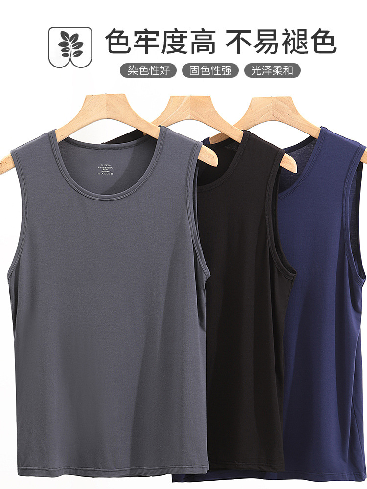 50 모달 조끼 남성용 여름 얇은 솔리드 컬러 라운드 넥 탄성 슬림 핏 이너웨어 남성용 와이드 숄더 베이스 셔츠스토어 가기