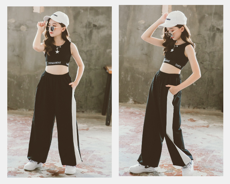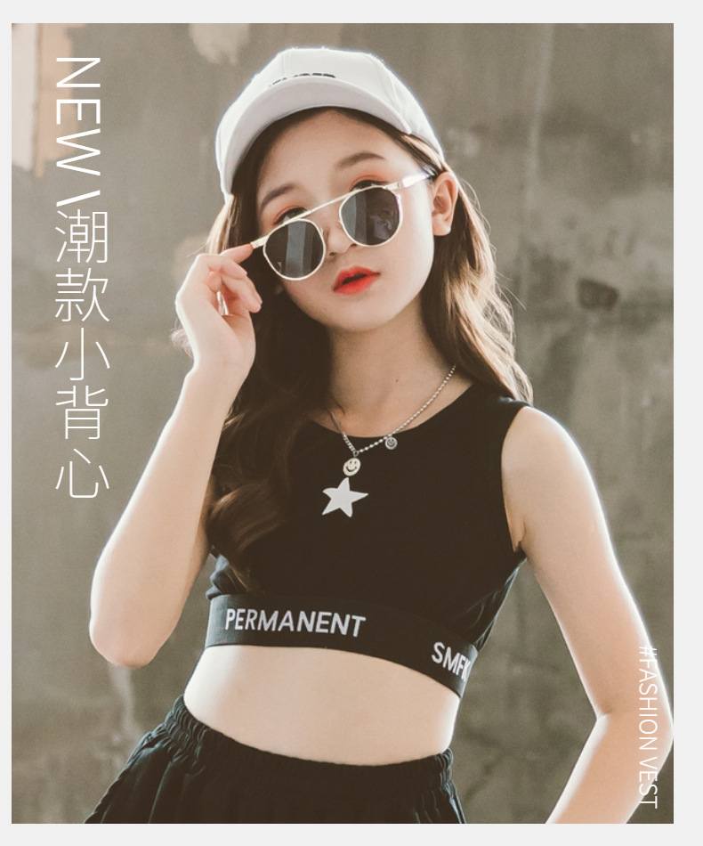 여아 슬링 재즈 댄스 조끼 여름 얇은 겉옷을 입고 배꼽 스트리트 댄스 블랙 하이 웨이스트 스포츠 조끼 짧은 조끼