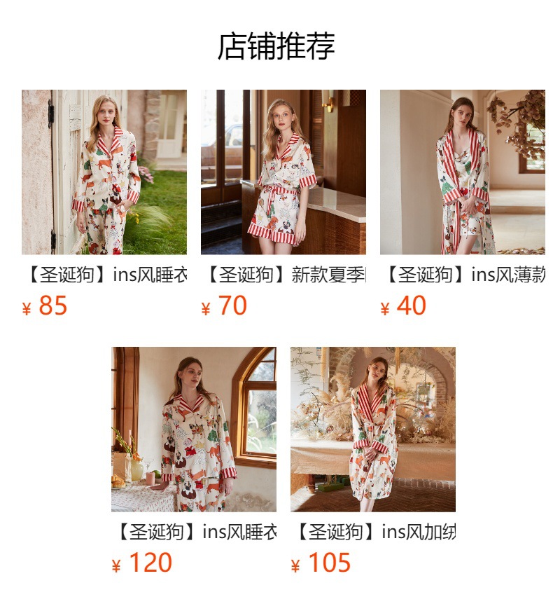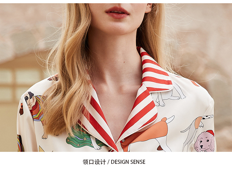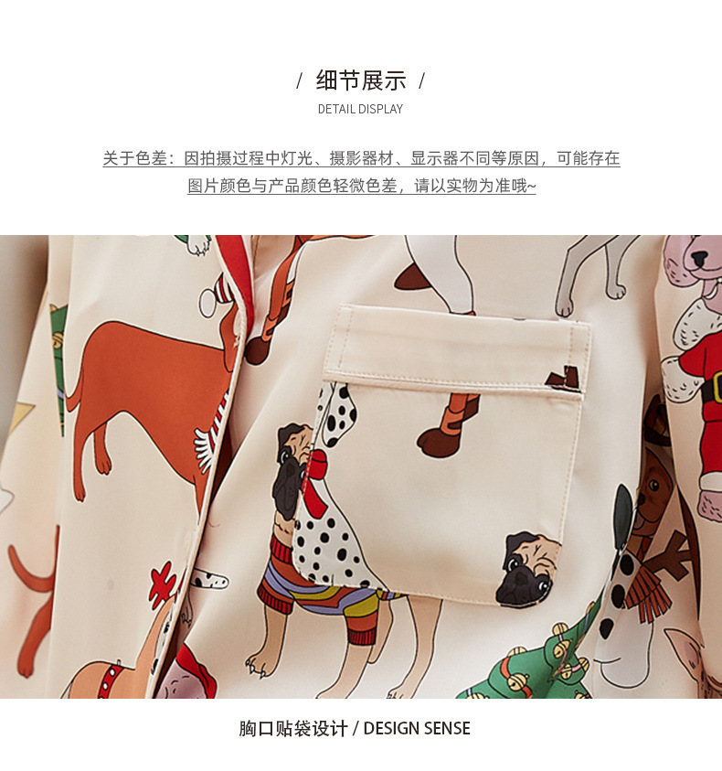 [크리스마스 개] Ins 스타일 잠옷 여성 봄, 가을 긴팔 바지 정장 칼라 모조 실크 여성 홈웨어 세트스토어 가기