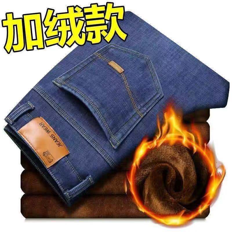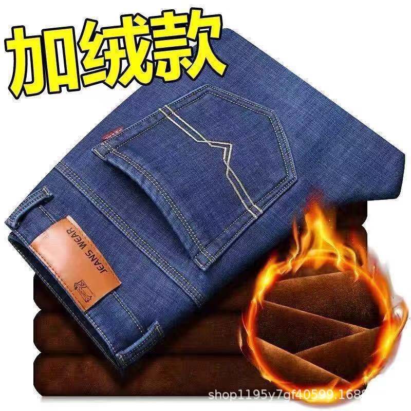 의류 트렌드 겨울용 기모 안감 두꺼운 남성용 청바지 스트레이트 루즈핏 중년용 하이웨이스트 남성 바지 작업복 바지스토어 가기