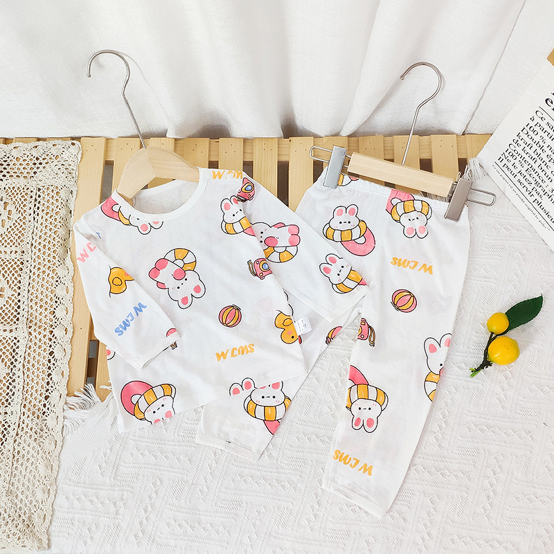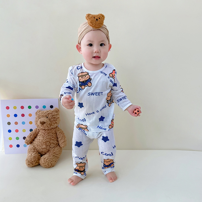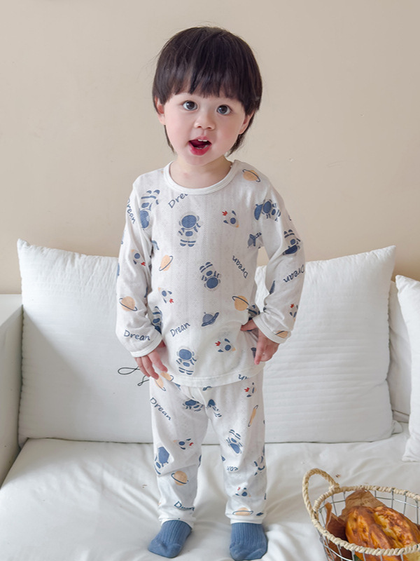 73-130 대나무 섬유 긴 소매 세트 아기 소년과 소녀 봄과 여름 긴 소매 에어컨 의류 어린이 잠옷 속옷 세트