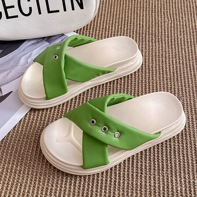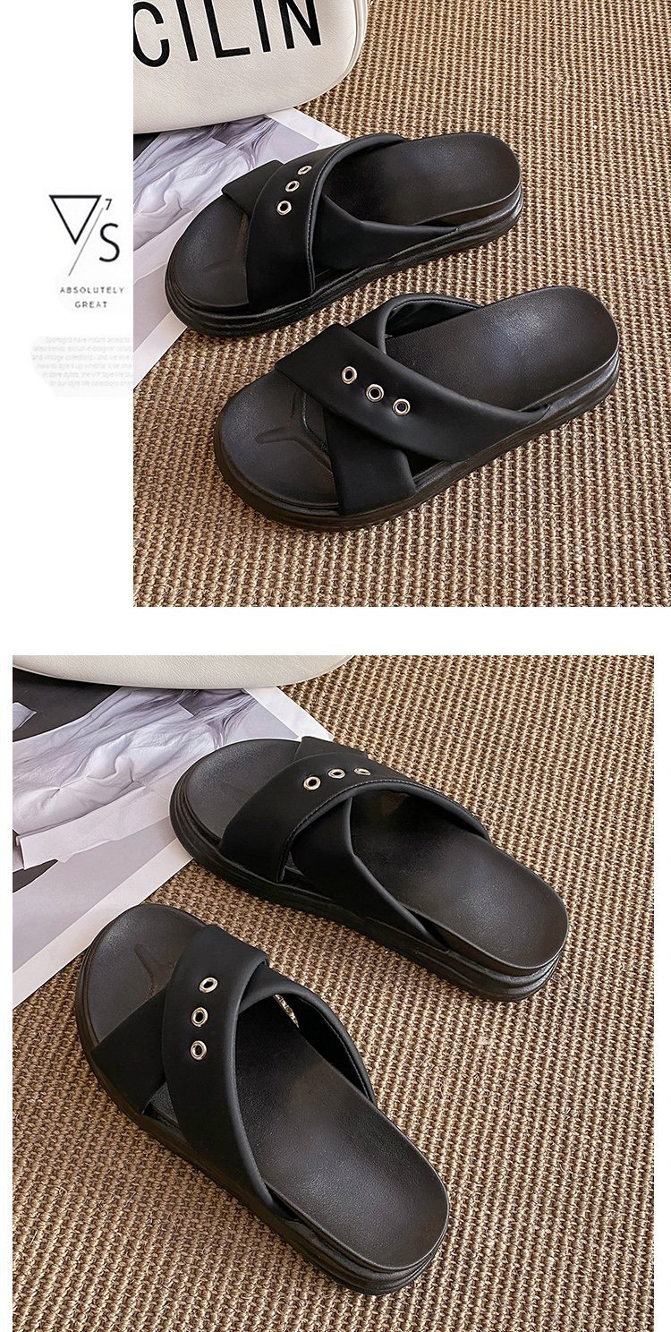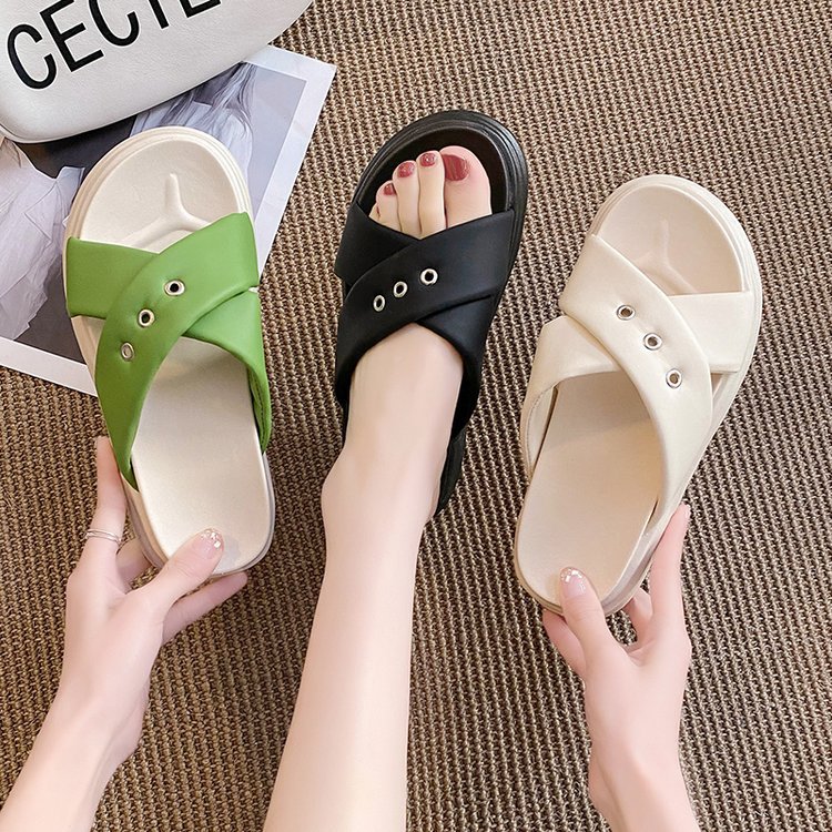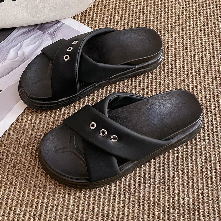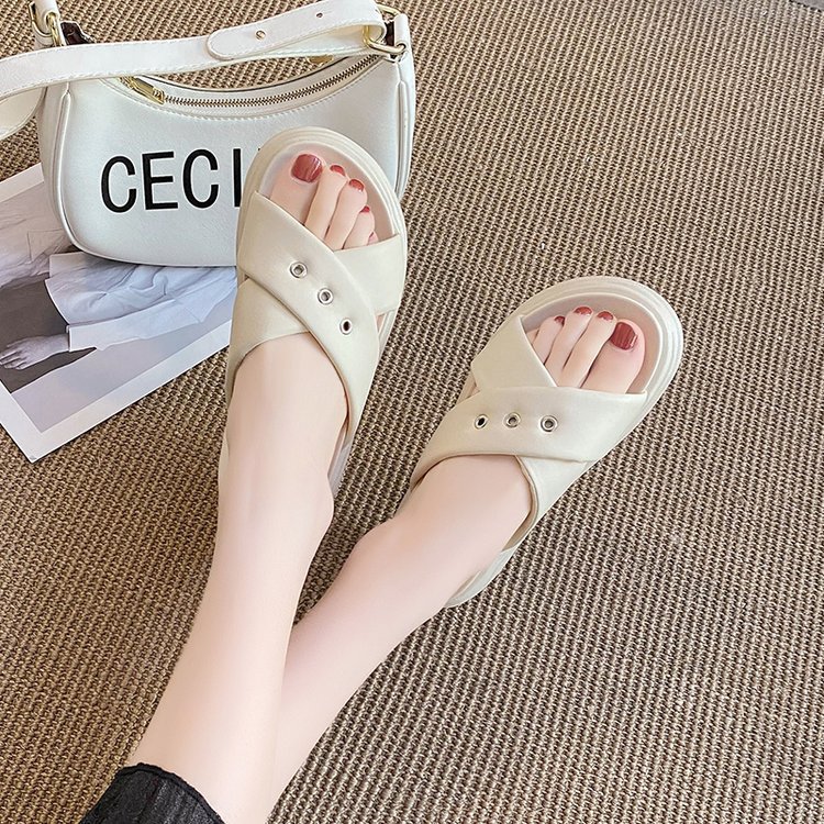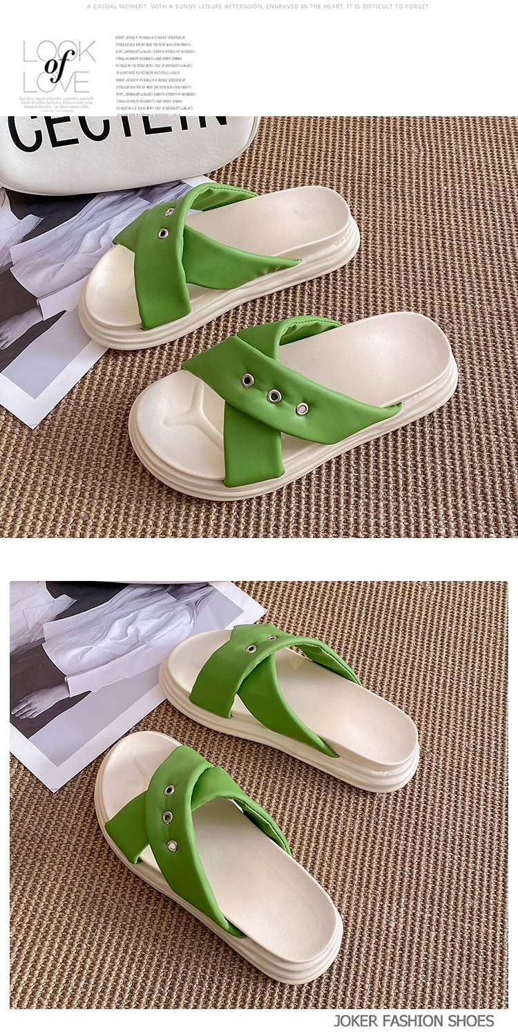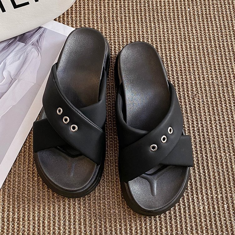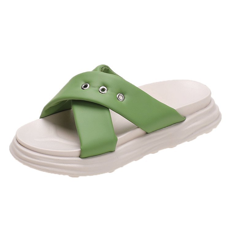 여자의 플러스 사이즈 플랫 슬리퍼 여자의 크로스 스트랩 오픈 발가락 라운드 헤드 슬리퍼 여름 여성을위한 새로운 두꺼운 플러스 사이즈 슬리퍼