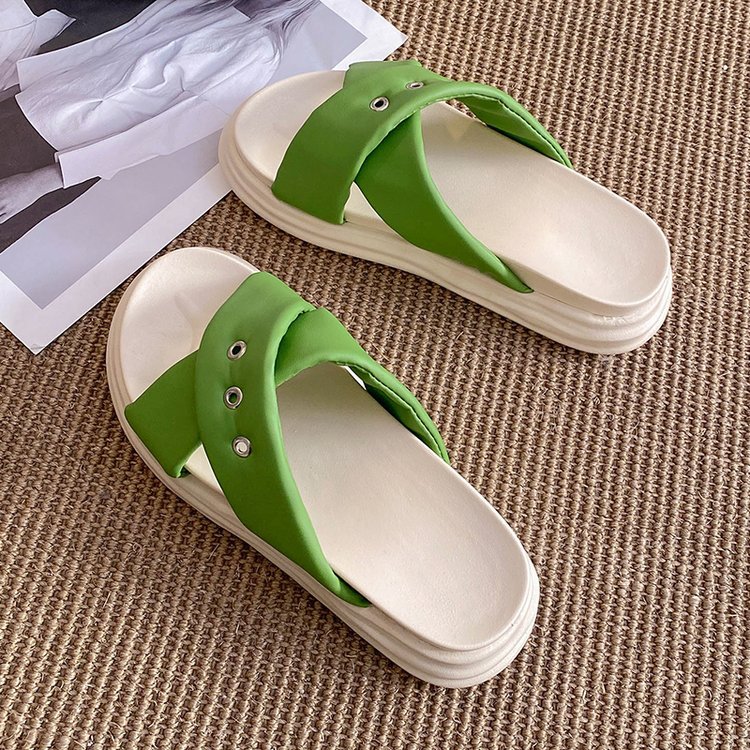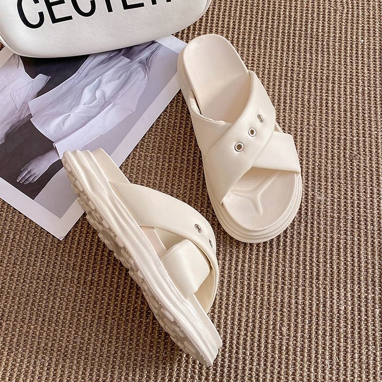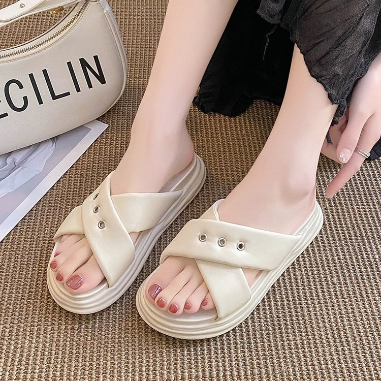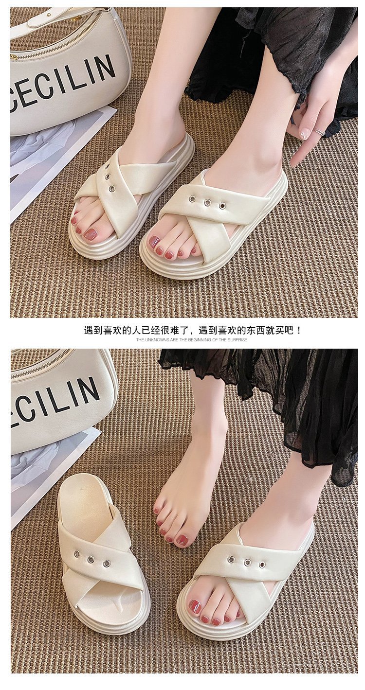 여자의 플러스 사이즈 플랫 슬리퍼 여자의 크로스 스트랩 오픈 발가락 라운드 헤드 슬리퍼 여름 여성을위한 새로운 두꺼운 플러스 사이즈 슬리퍼스토어 가기