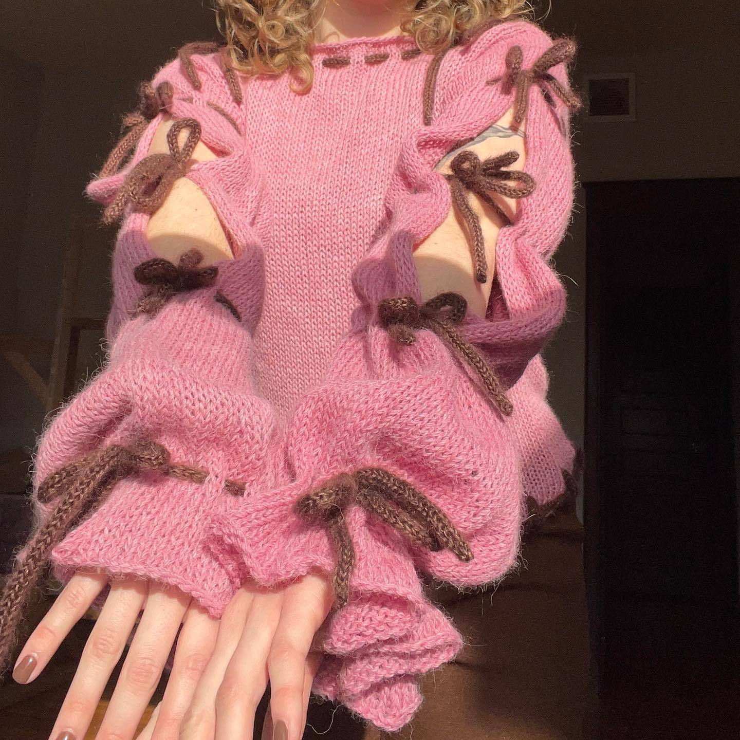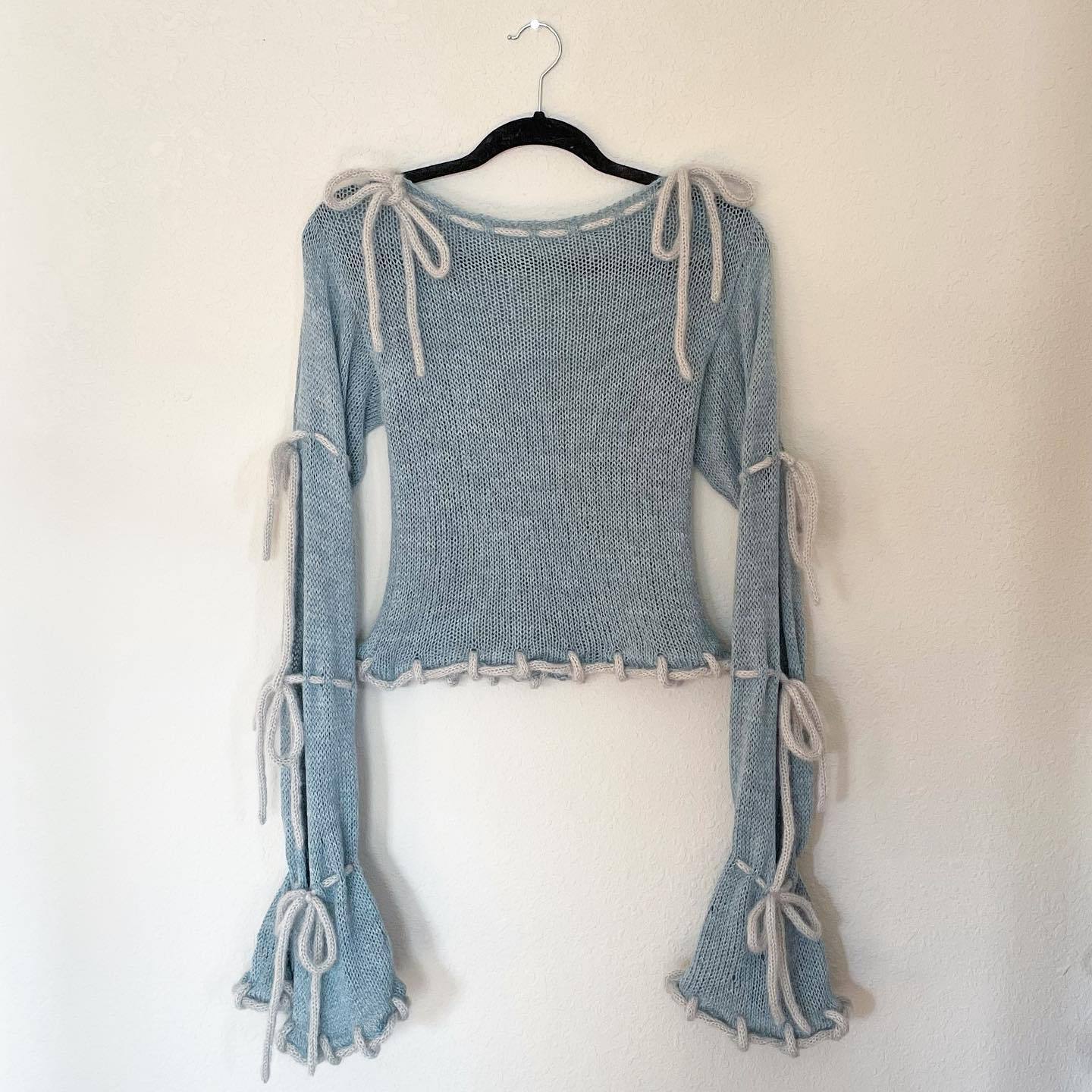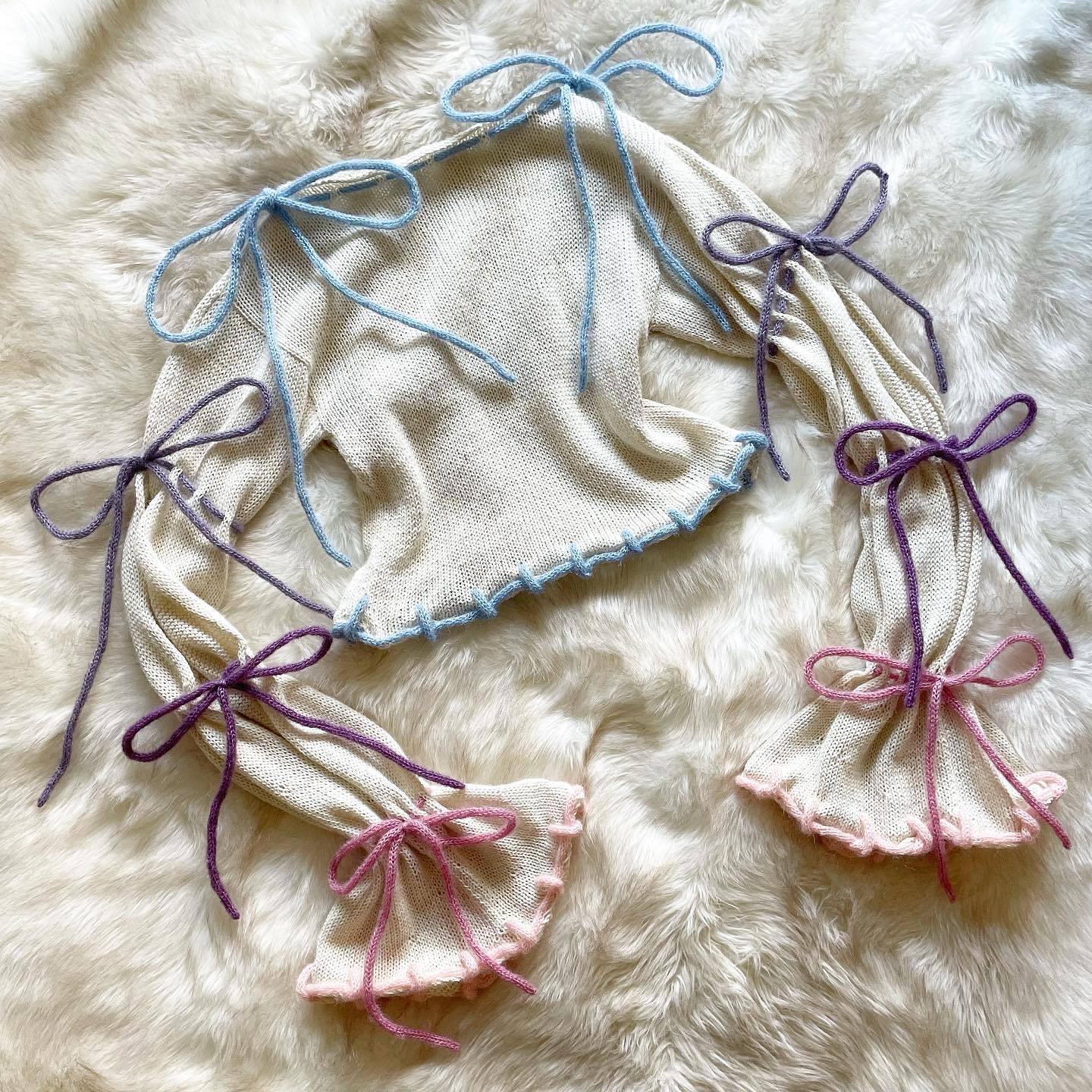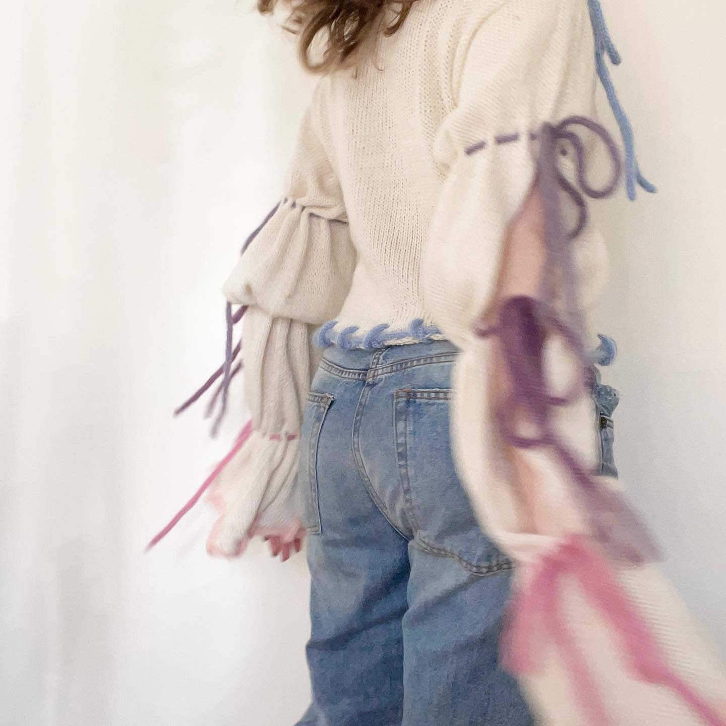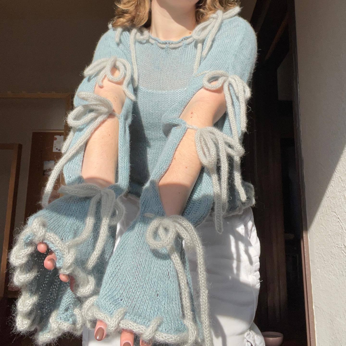 화려한 레이스 업 스웨터 여성의 AliExpress 유럽과 미국 여성의 우아한 라운드 넥 트럼펫 슬리브 컬러 명암 슬림 핏 슬림 스웨터스토어 가기
