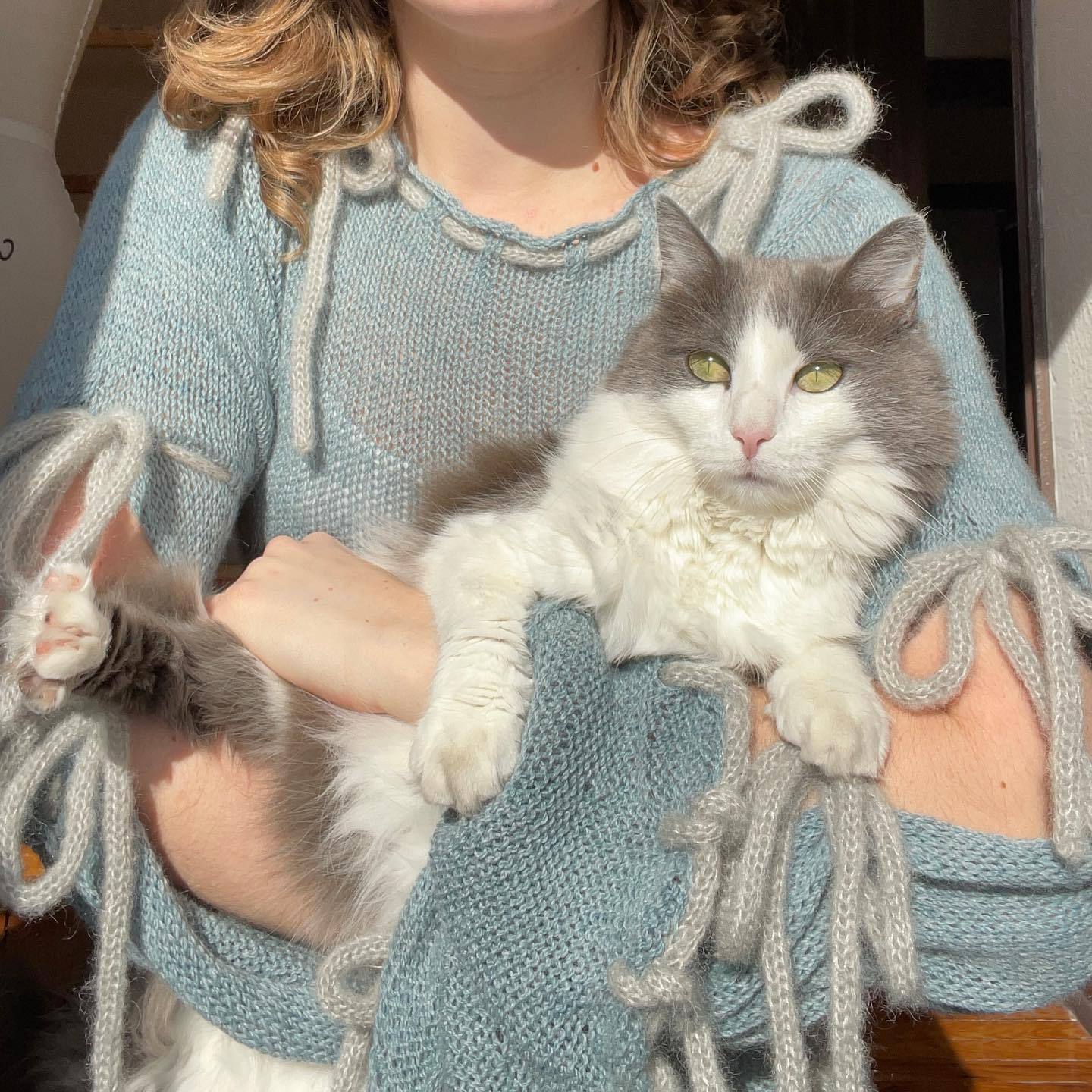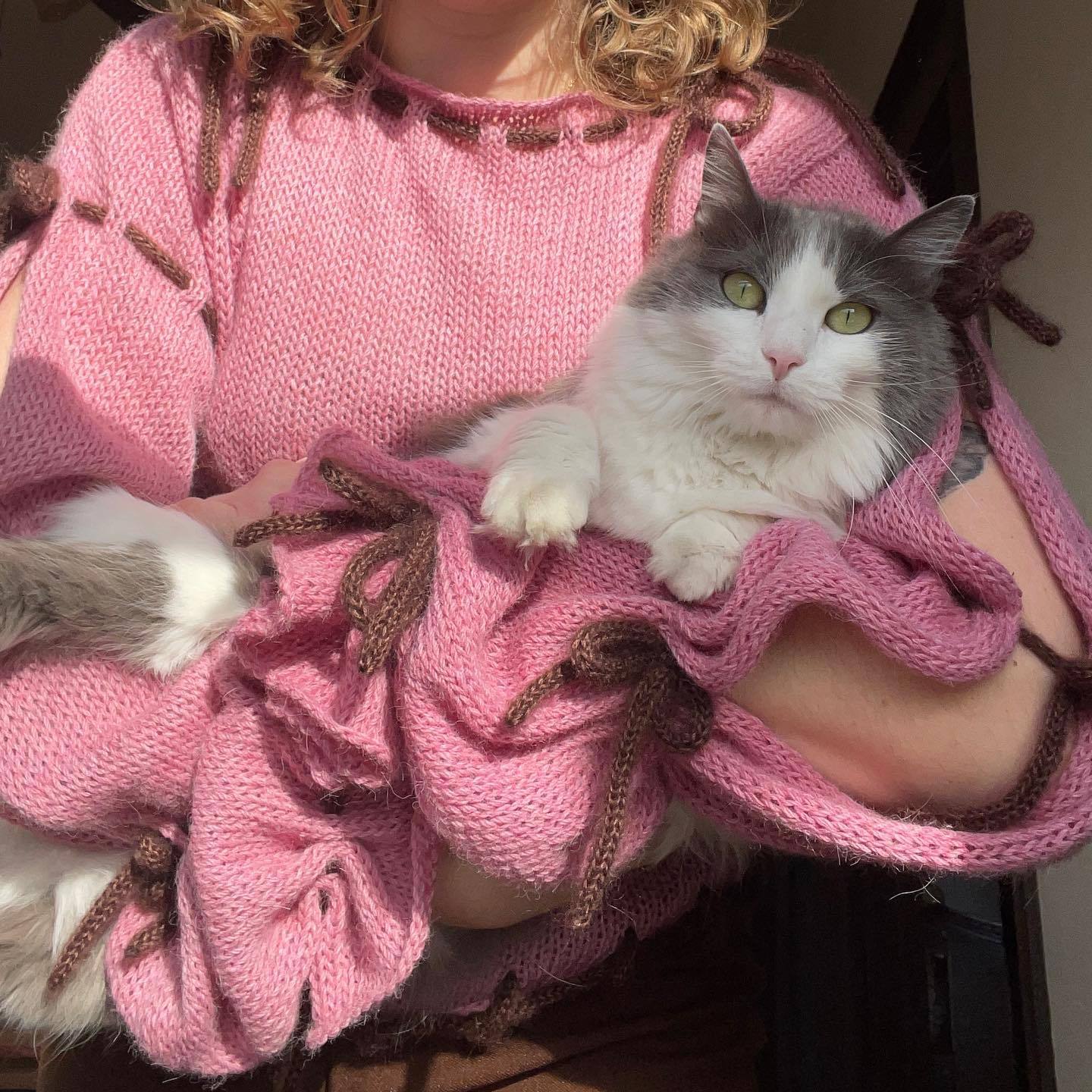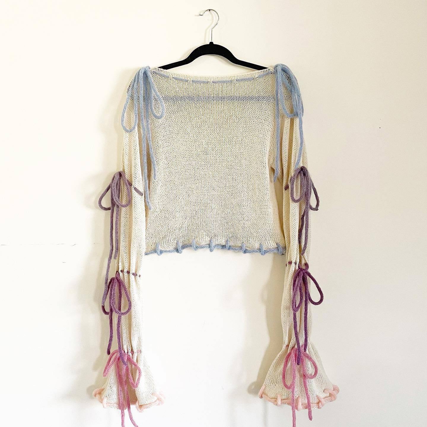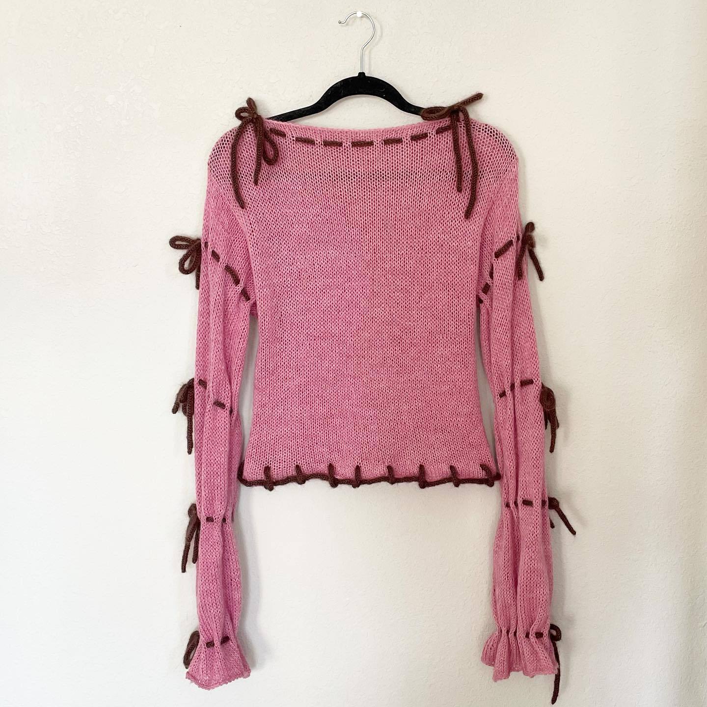 화려한 레이스 업 스웨터 여성의 AliExpress 유럽과 미국 여성의 우아한 라운드 넥 트럼펫 슬리브 컬러 명암 슬림 핏 슬림 스웨터스토어 가기