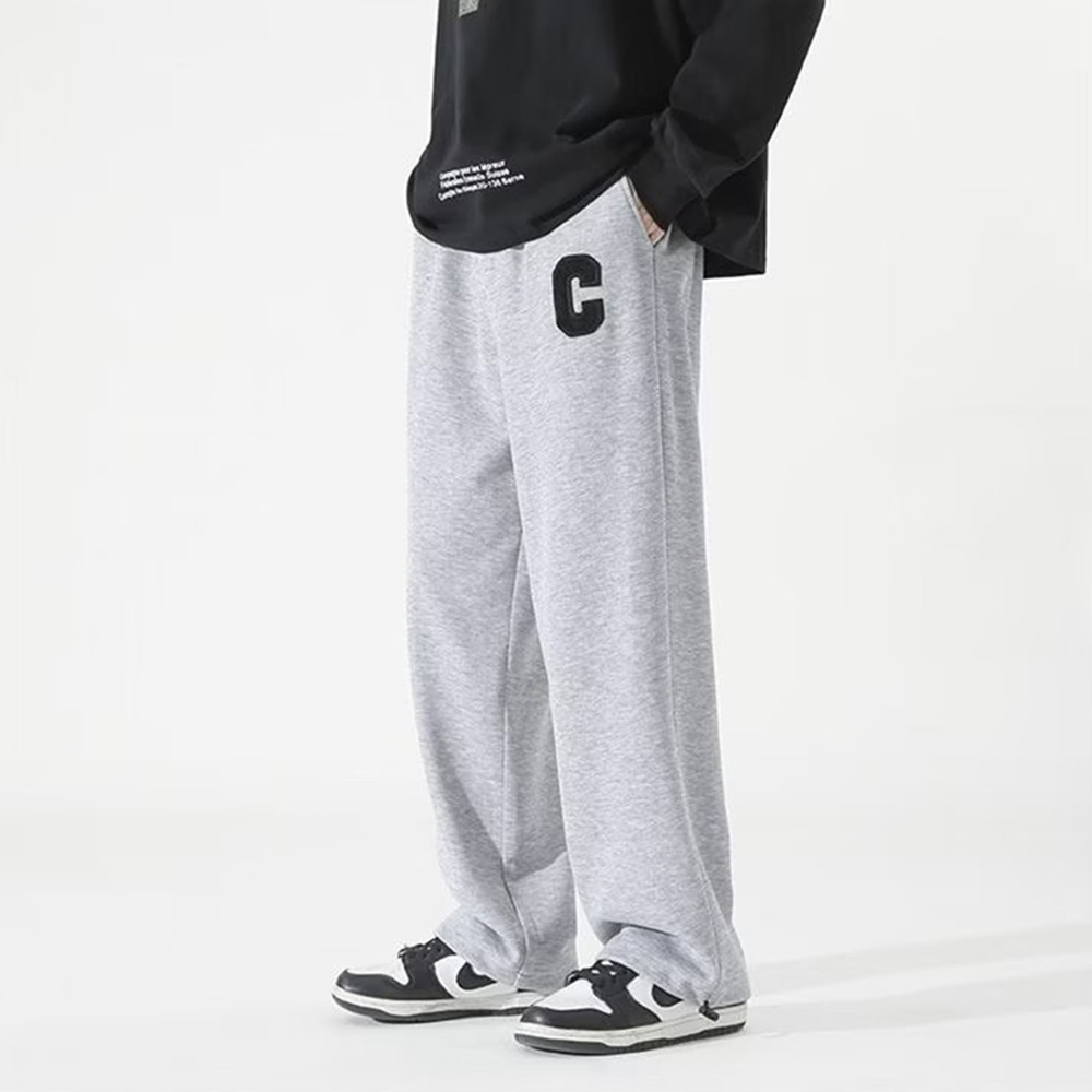 스웨트 팬츠 남성용 여름과 봄 가을 스트레이트 루즈한 와이드 레그 남성용 스포츠 2023 고등학생용 그레이 캐주얼 롱 팬츠스토어 가기