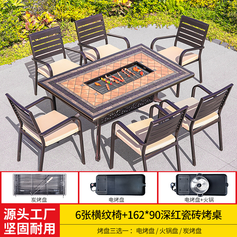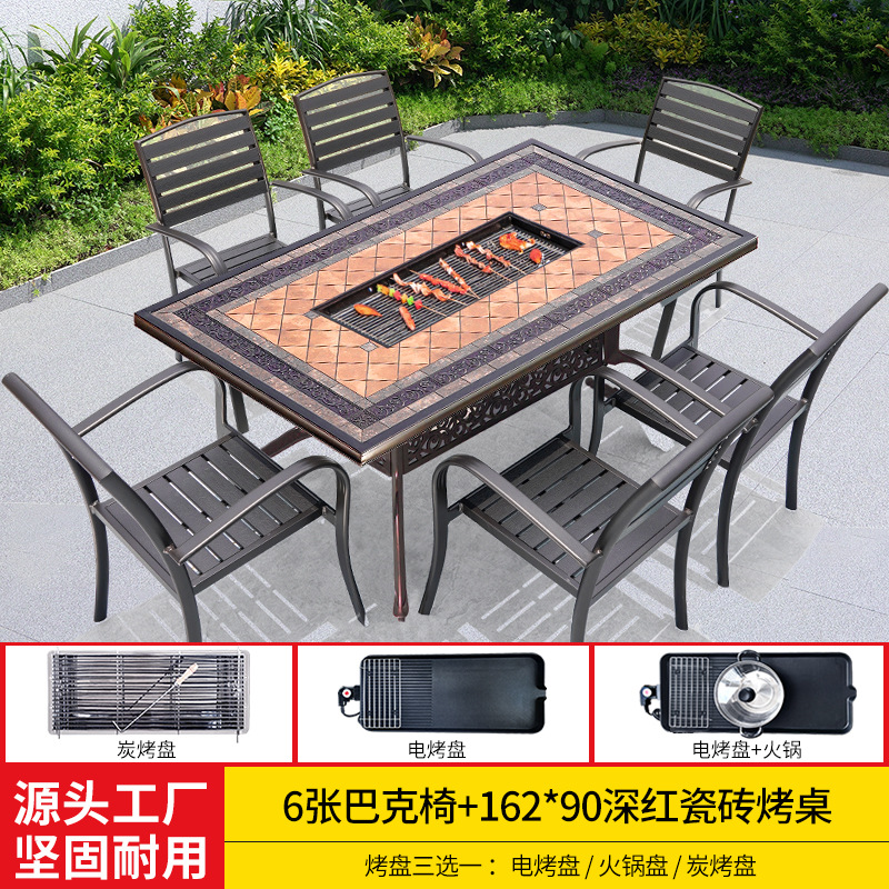 • 벅 의자 6개 + [업그레이드 모델] 162*90 다크 레드 세라믹 타일 그릴 테이블