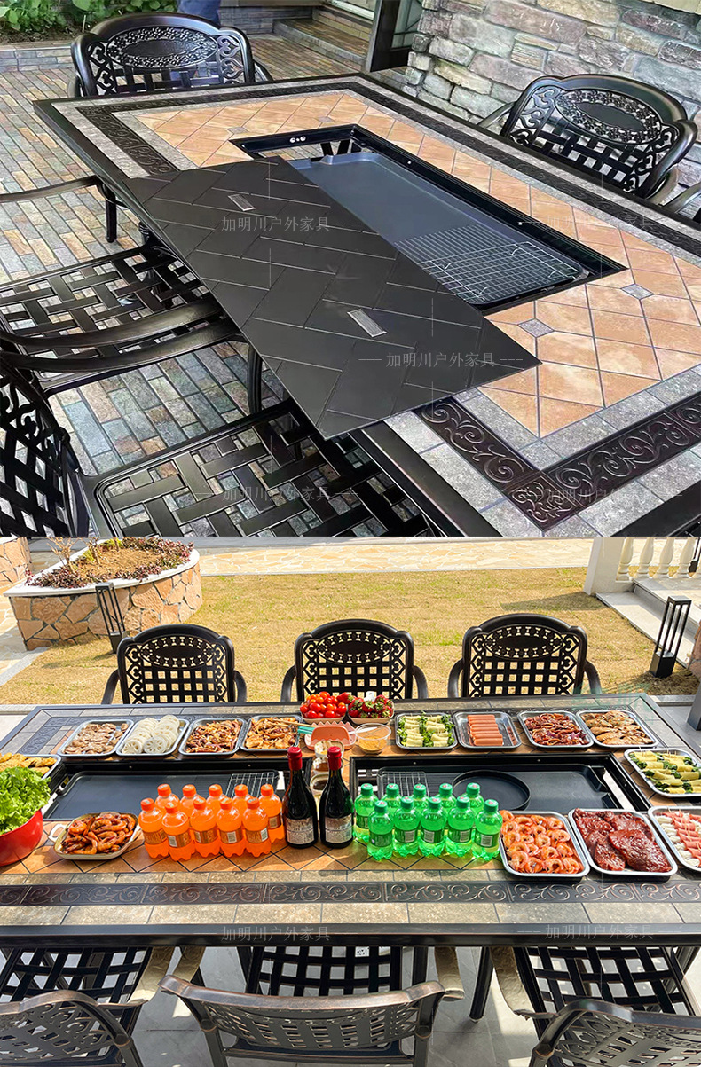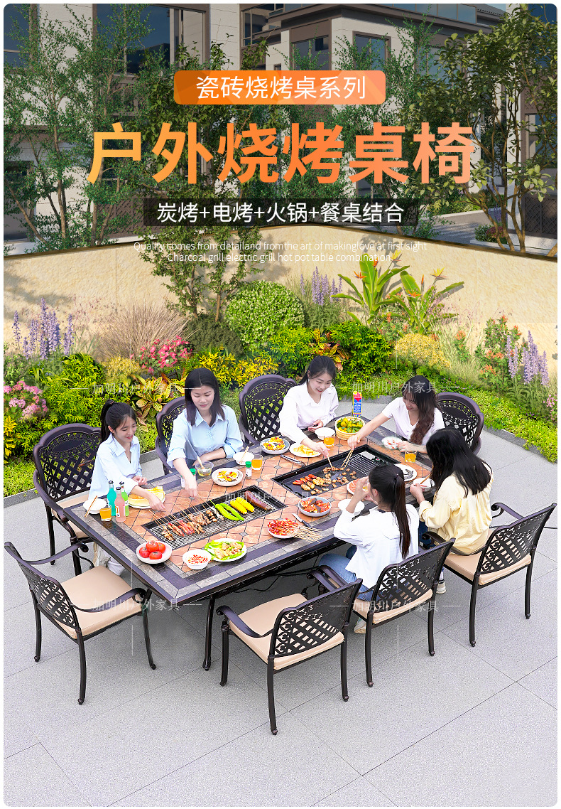 야외 바베큐 테이블과 의자, 주조 알루미늄 상업용 야외 레저용 숯불 바베큐 그릴, 정원 테이블, 가정용 마당 숯불 그릴