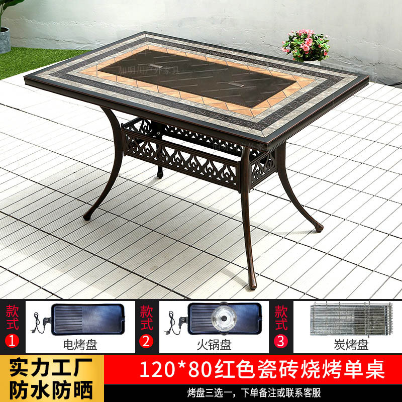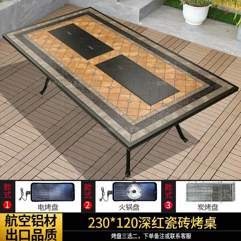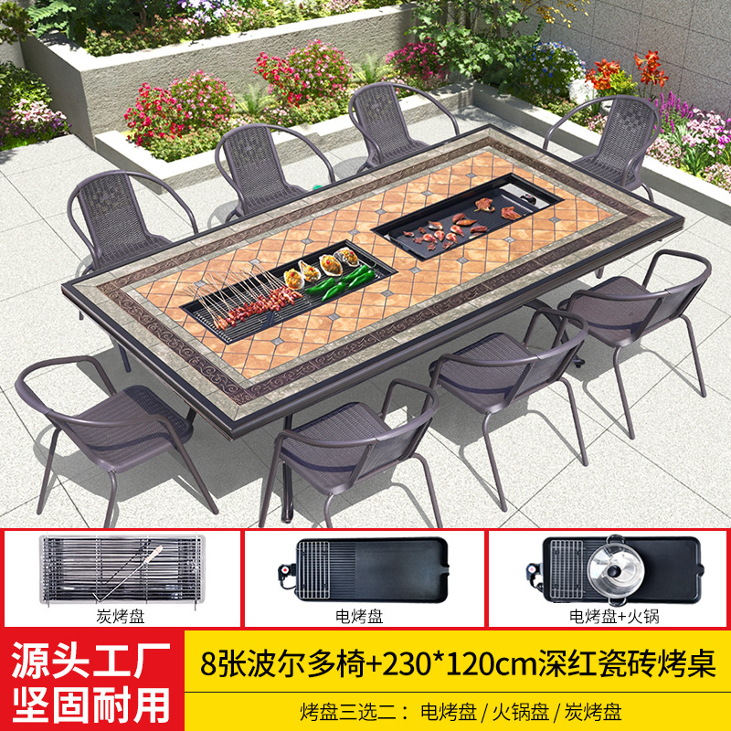 • 가로 패턴 의자 10개 + [업그레이드 모델] 230*120cm 진한 빨간색 세라믹 타일 이중 스토브 그릴 테이블