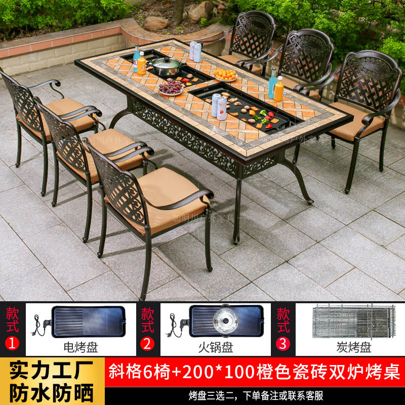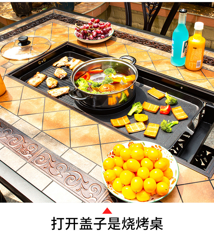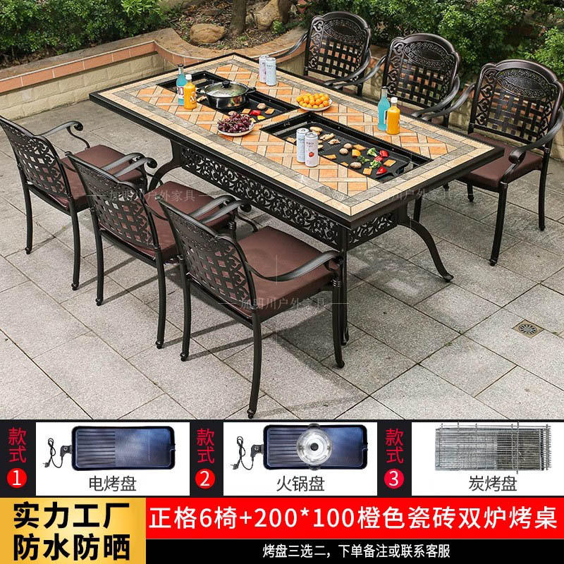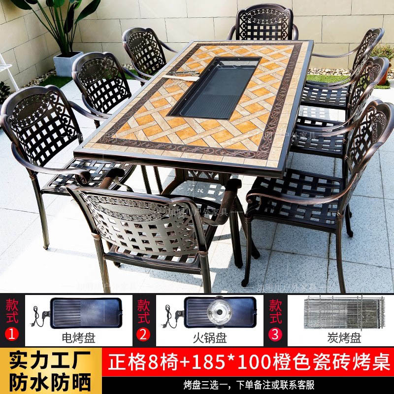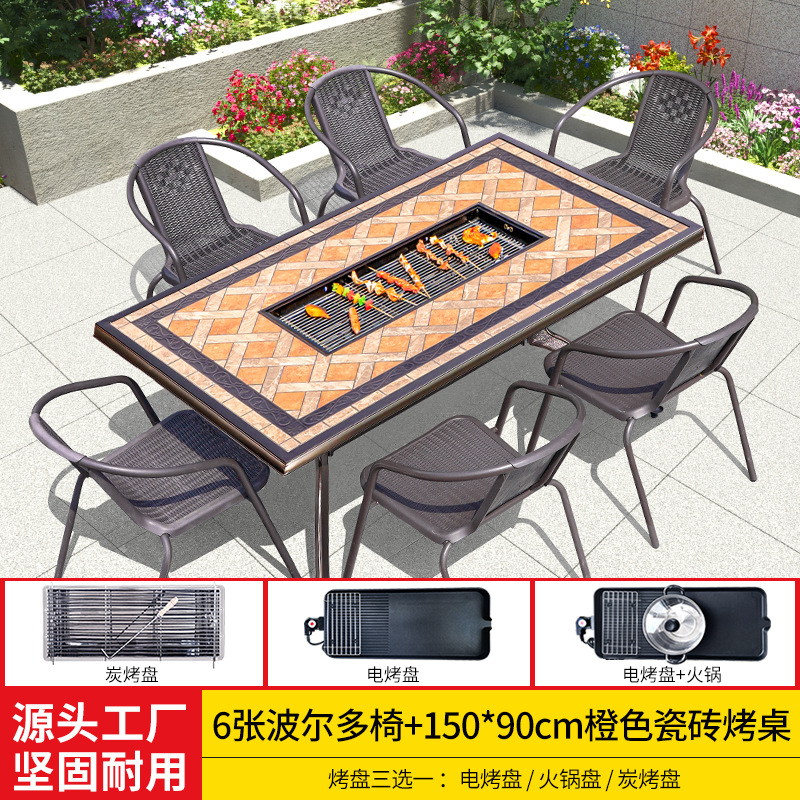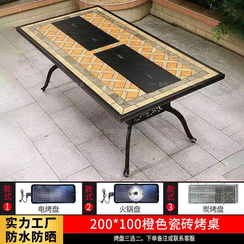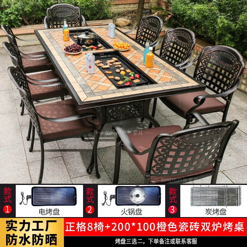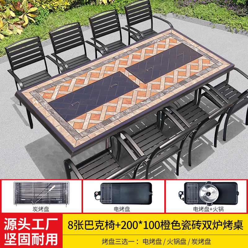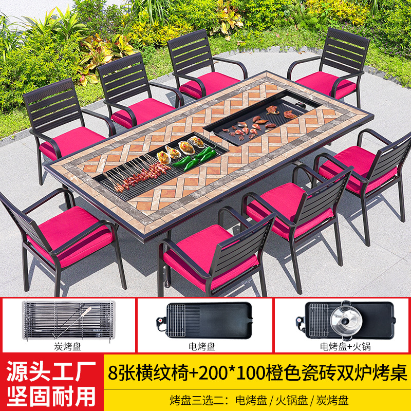 • 벅 의자 8개 + [업그레이드 모델] 200*100 오렌지 도자기 이중 스토브 벽돌 그릴 테이블