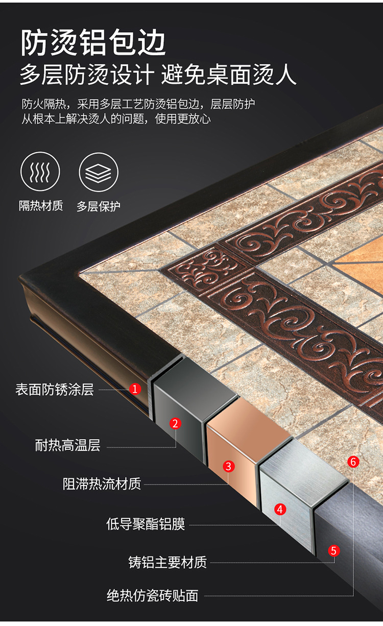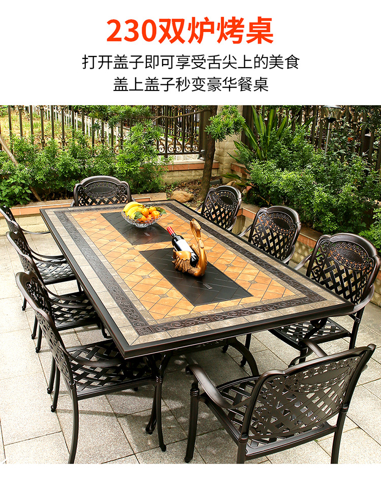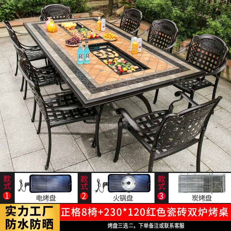 • 벅 의자 8개 + [업그레이드 모델] 230*120cm 진한 빨간색 세라믹 타일 이중 스토브 그릴 테이블