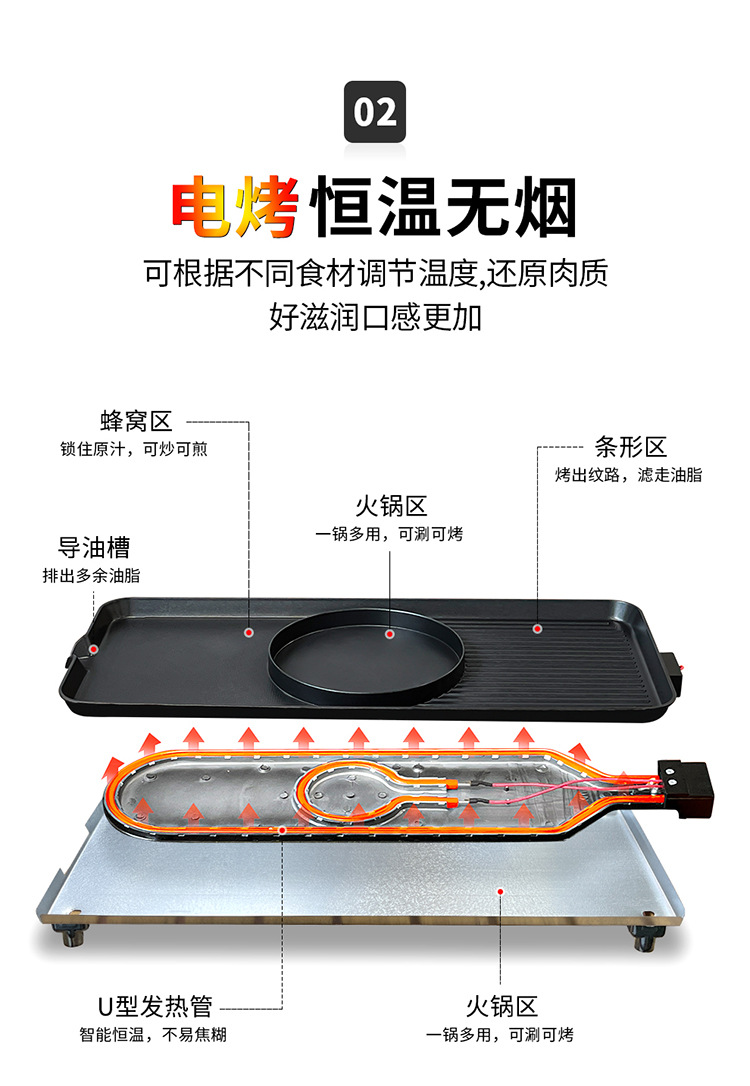 • 가로 패턴 의자 8개 + [업그레이드 모델] 230*120cm 진한 빨간색 세라믹 타일 이중 스토브 그릴 테이블