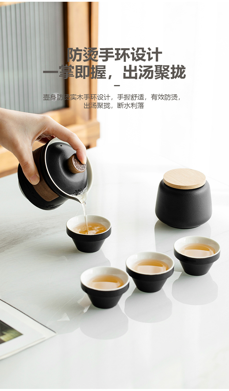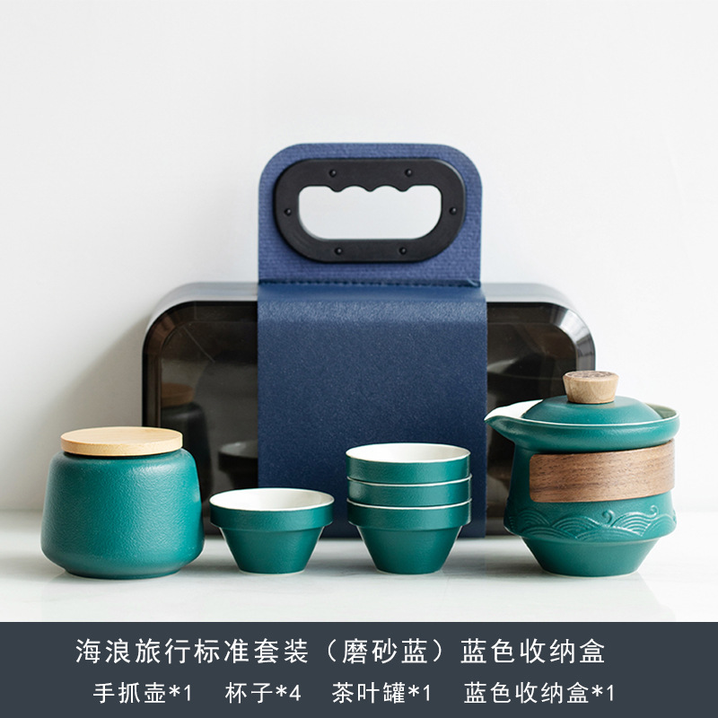 굵은 도자기 여행 차 세트 세트 운반 가방 빠른 손님 컵 야외 쿵푸 차 세트 세라믹 1 냄비 4 컵 기업 로고스토어 가기