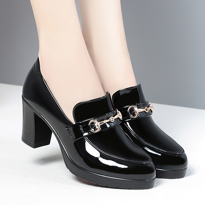 청키 힐 딥 마우스 싱글 레이어 슈즈 여성용 밝은 표면 에나멜 가죽 플랫폼 편안한 하이힐 봄과 가을 치파오 모델 쇼 슈즈스토어 가기