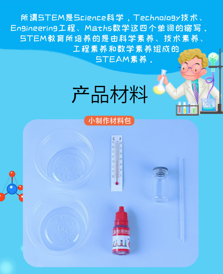 수제 온도계 초등학생 수공예 창의적 DIY 열팽창 및 냉수축 실험 과학기술 소형 제작 교육용 재료