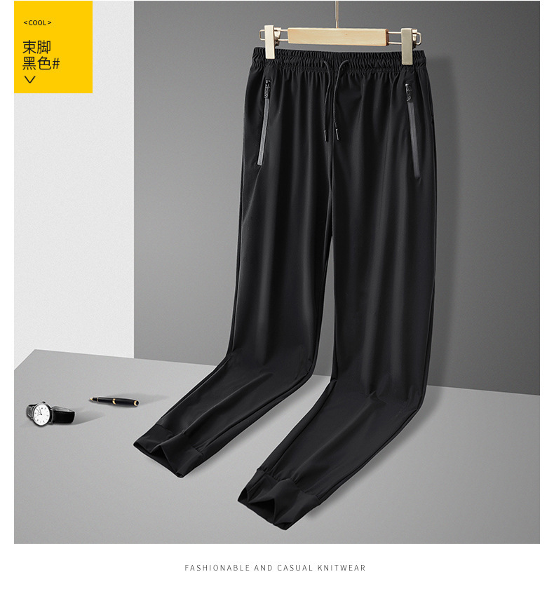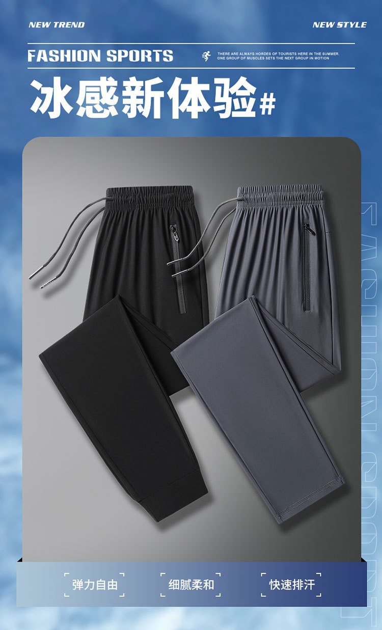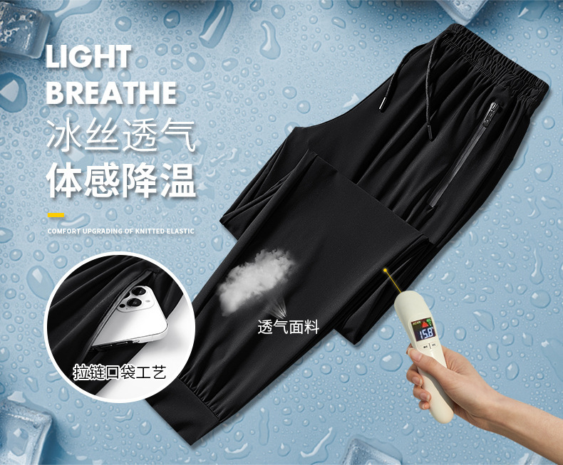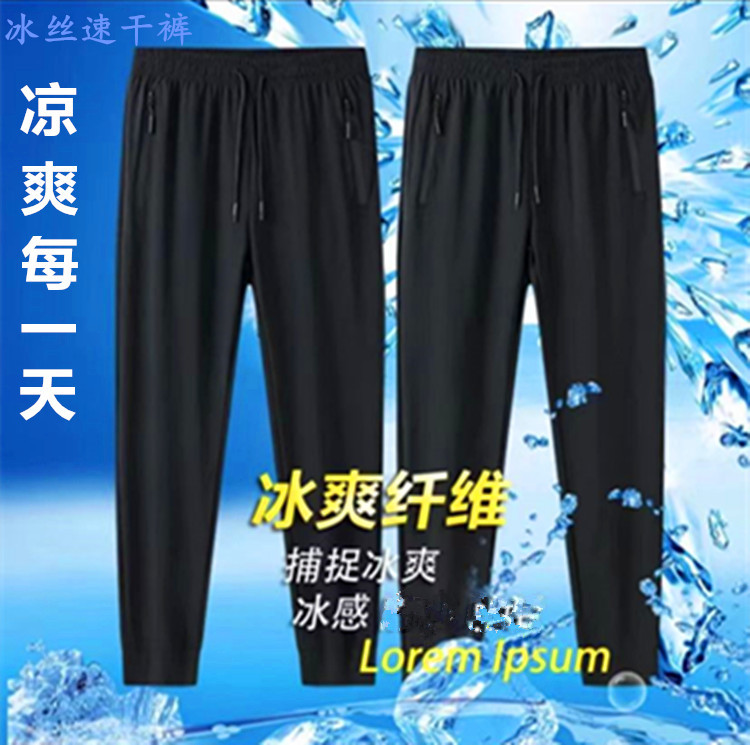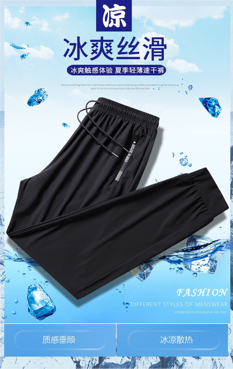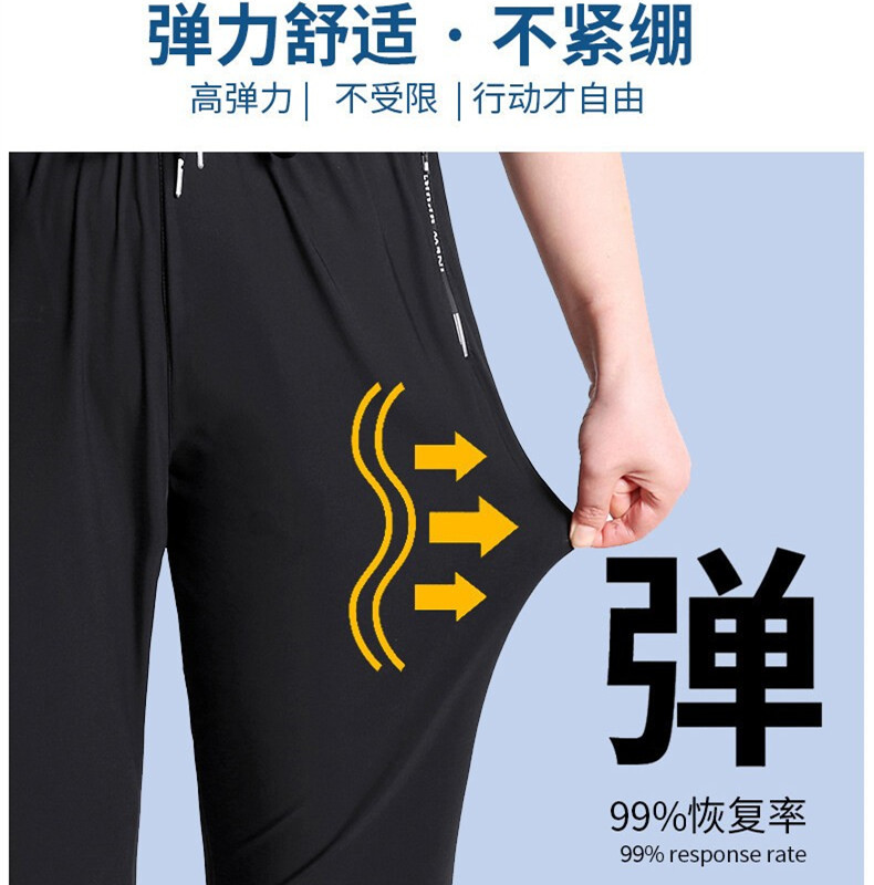 아이스 실크 바지 남자 여름 얇은 남자 캐주얼 바지 통기성 다리 느슨한 높은 탄력 빠른 건조 에어컨 스포츠 바지스토어 가기