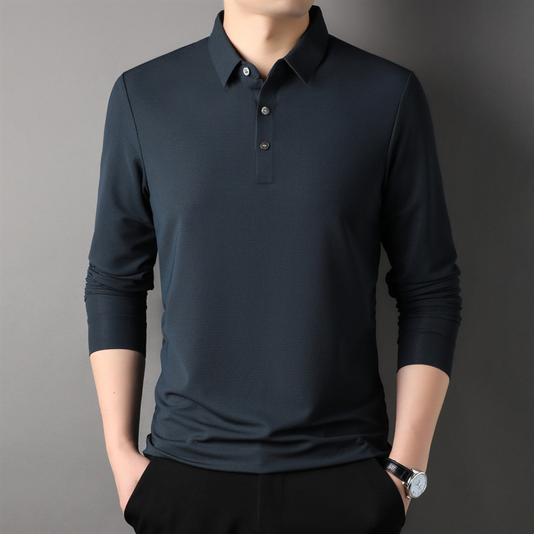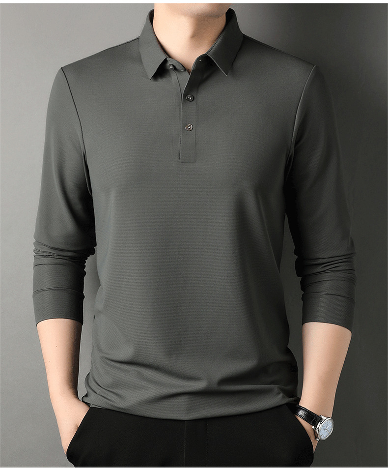 라이브 폭발 봄과 가을 단색 와플 긴 소매 캐주얼 비즈니스 폴로 셔츠 젊은이와 중년 남성 상의