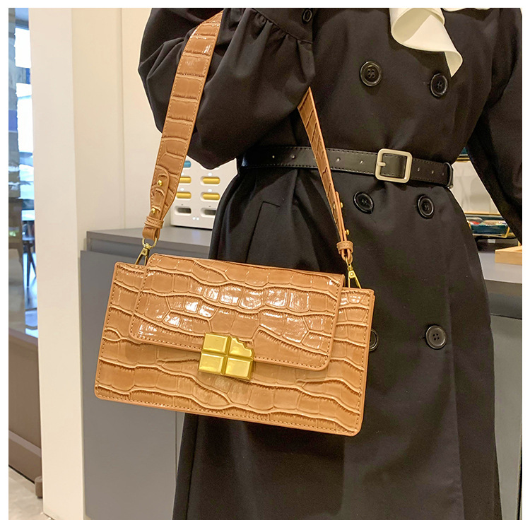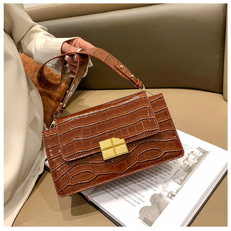 새로운 악어 패턴 pu 크로스 바디 백 여성용 2023 유행 독특한 스트리트 트렌드 싱글 숄더 백 심플 신선한 크로스 바디 백