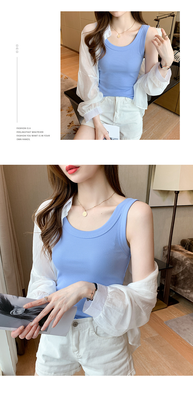 캐미솔 여성 정장 하의 셔츠, 새로운 2025 여름 신상 노출 방지 커버업 백색 상의