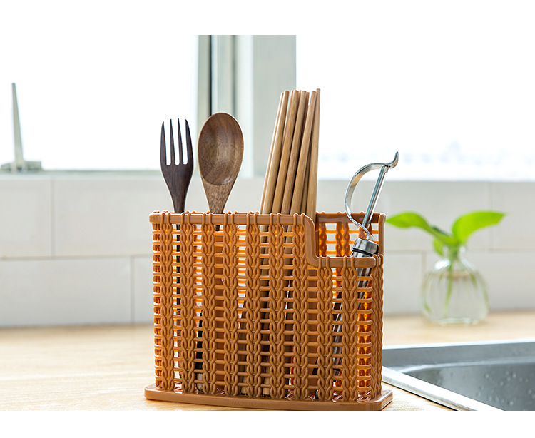 플라스틱 짠 젓가락 케이지 중공 멀티 격자 젓가락 보관 랙 숟가락 용 다기능 주방 배수 랙