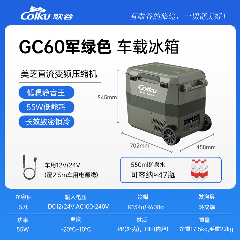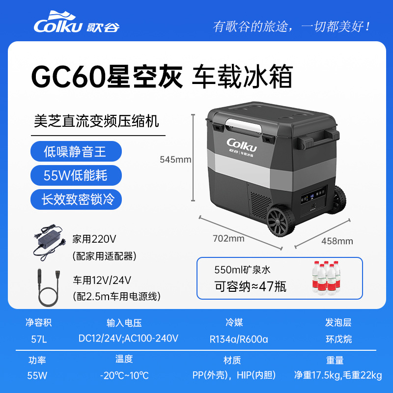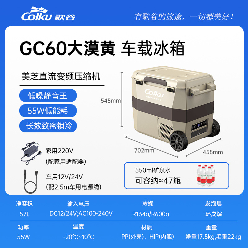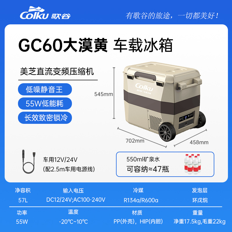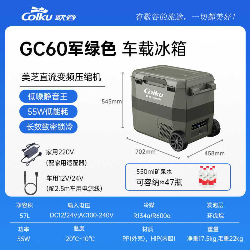 고구 GC60 휴대용 풀로드 자동차 냉장고 압축기 냉장 냉동고 냉장고 가정용 이중 사용 더블 박스 냉장고
