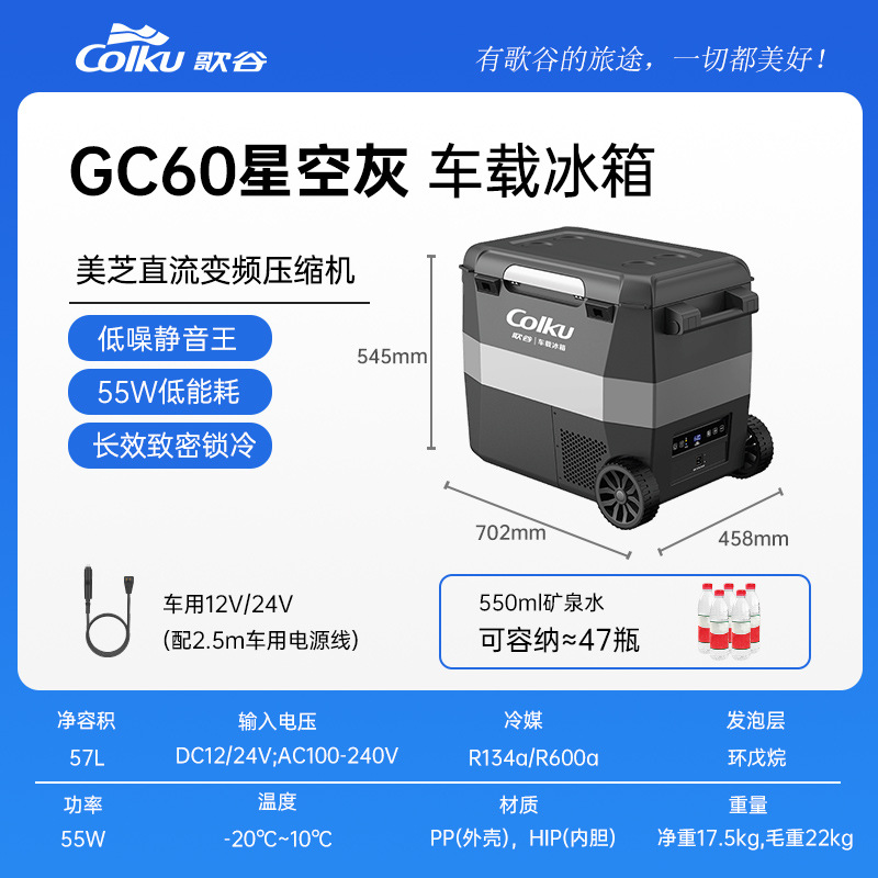 고구 GC60 휴대용 풀로드 자동차 냉장고 압축기 냉장 냉동고 냉장고 가정용 이중 사용 더블 박스 냉장고스토어 가기