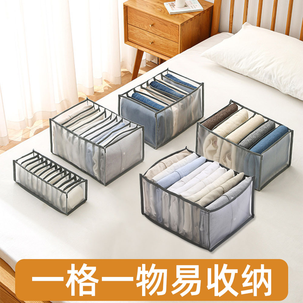 新品家用衣服网格衣柜收纳盒抽屉式内衣裤牛仔裤整理收纳袋批发_