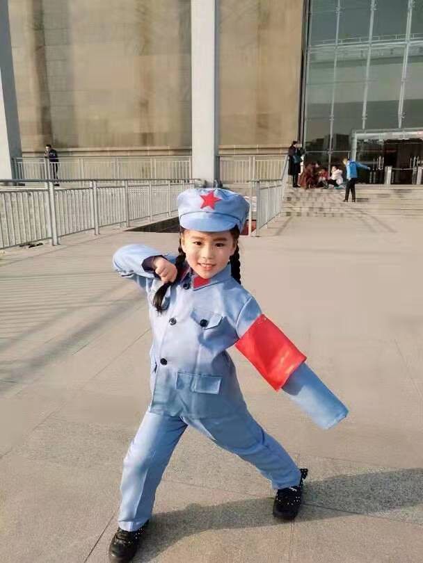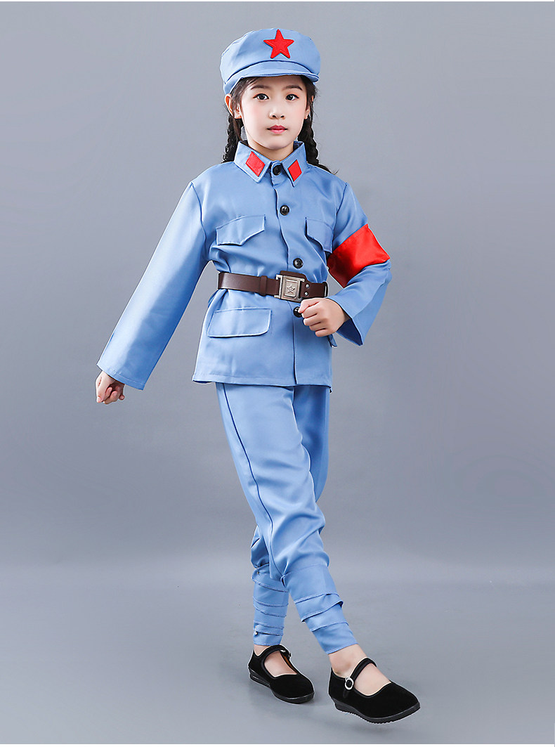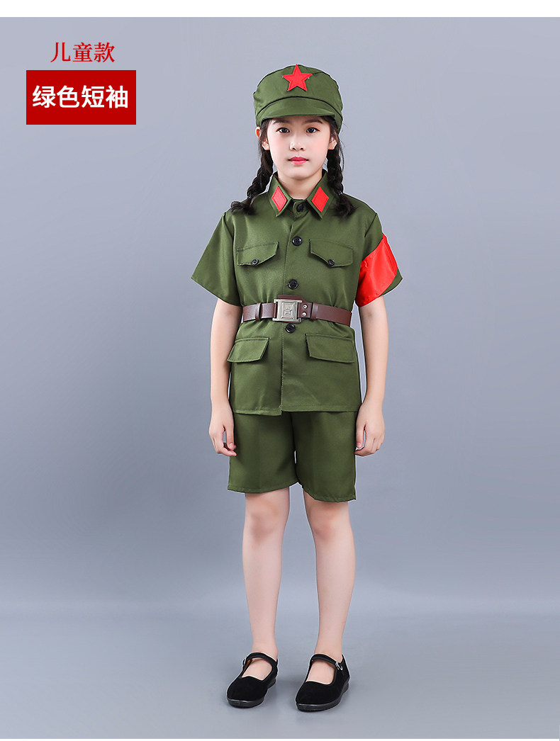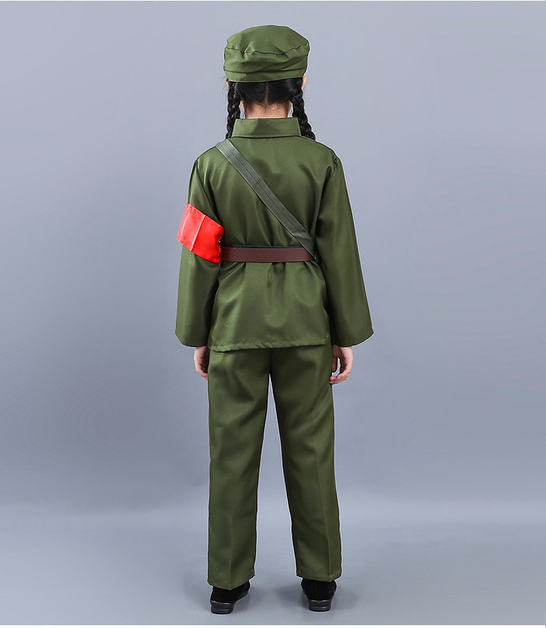 작은 빨간 군대 어린이 의상 군복 작은 여덟 도로 옷 소년과 소녀 레드 스타 빛나는 댄스 공연 의상 세트스토어 가기