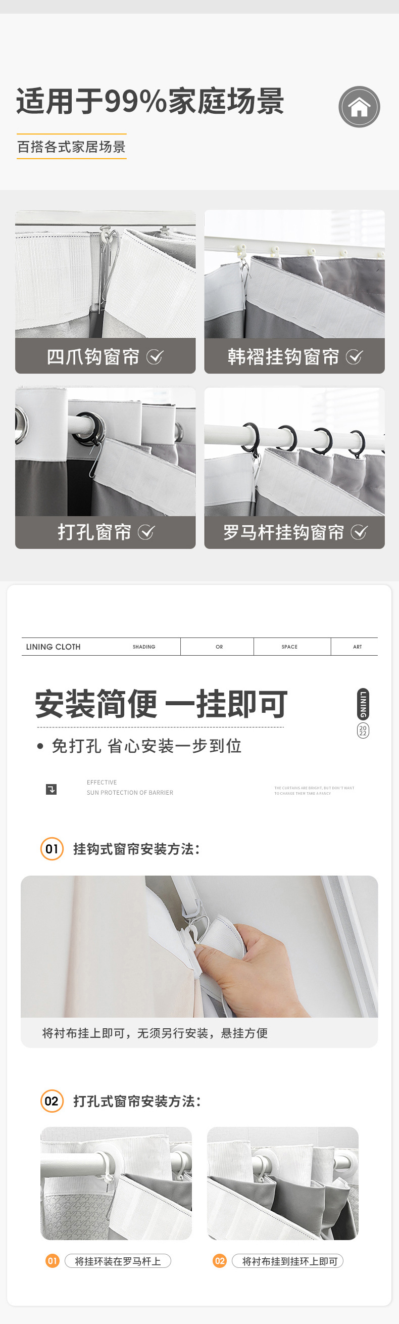 커튼 라이너 완전 차광 창문 침실 2025 신형 차양 및 단열 라이너 추가 레이어 창문용