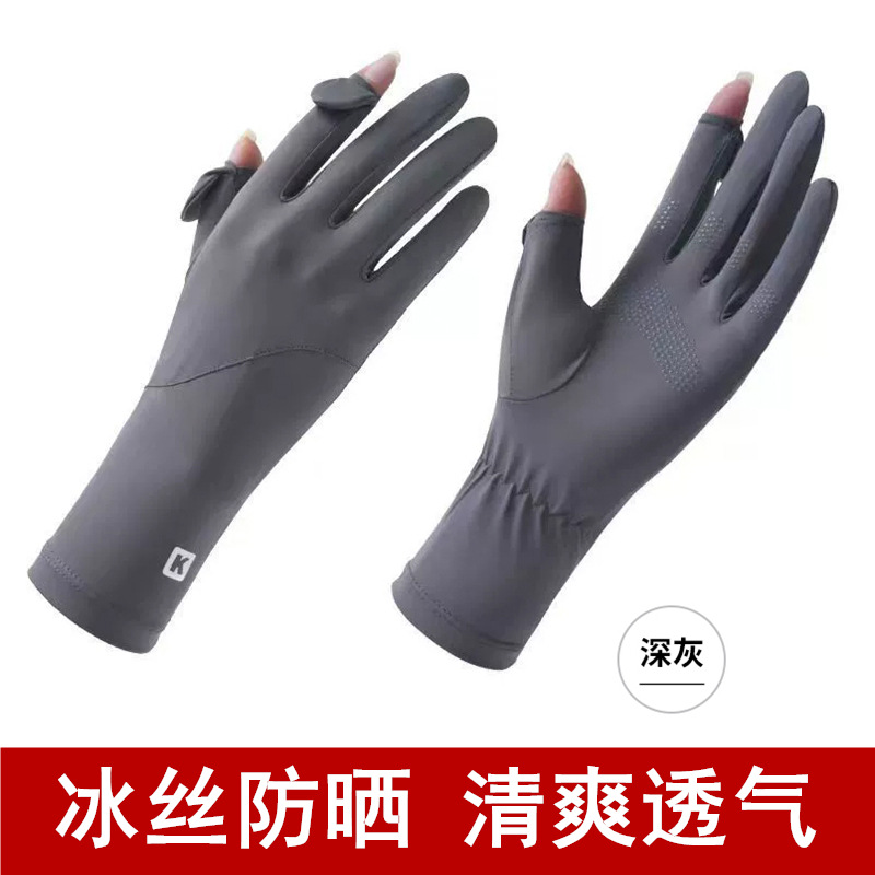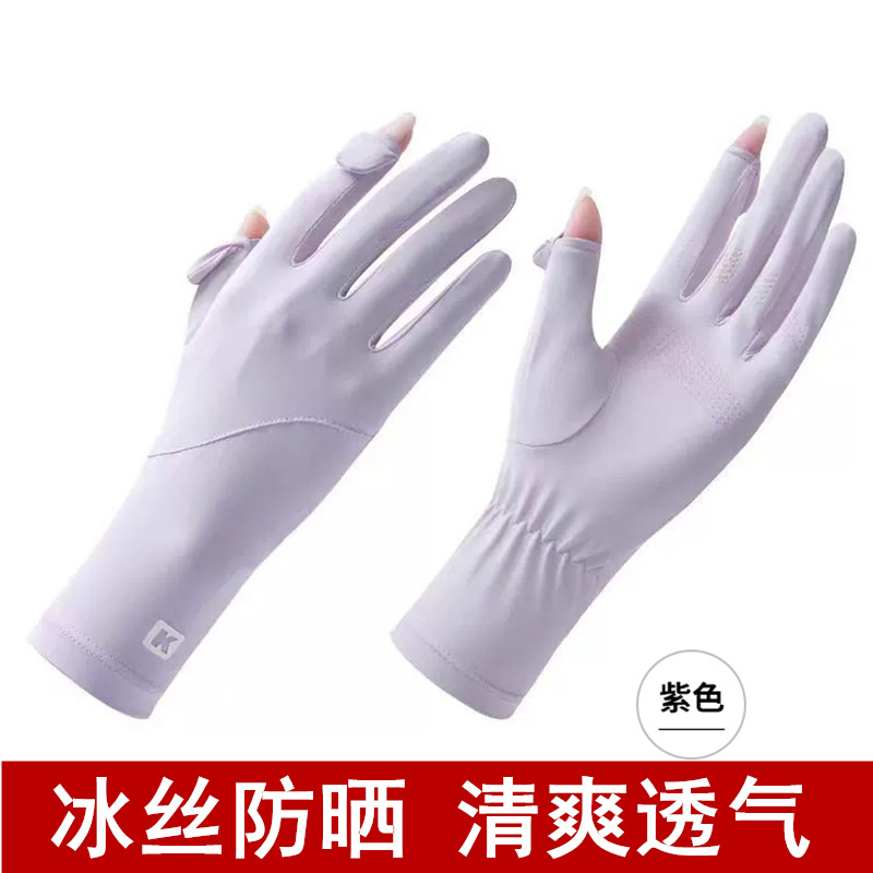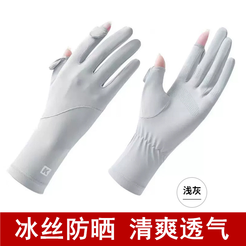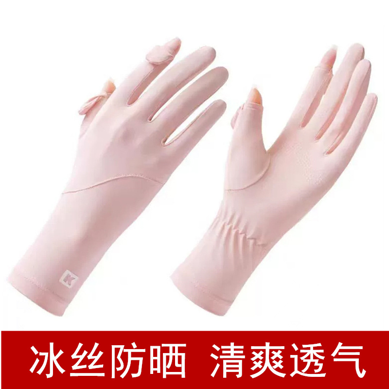 여성용 자외선 차단 장갑, 여름용 얇은 모델, 운전, 자전거, 전동차용, 미끄럼 방지, 터치스크린, 아이스 실크, 터치스크린 미끄럼 방지