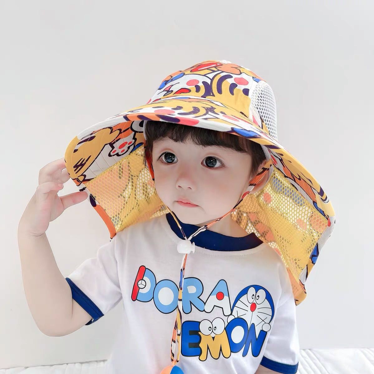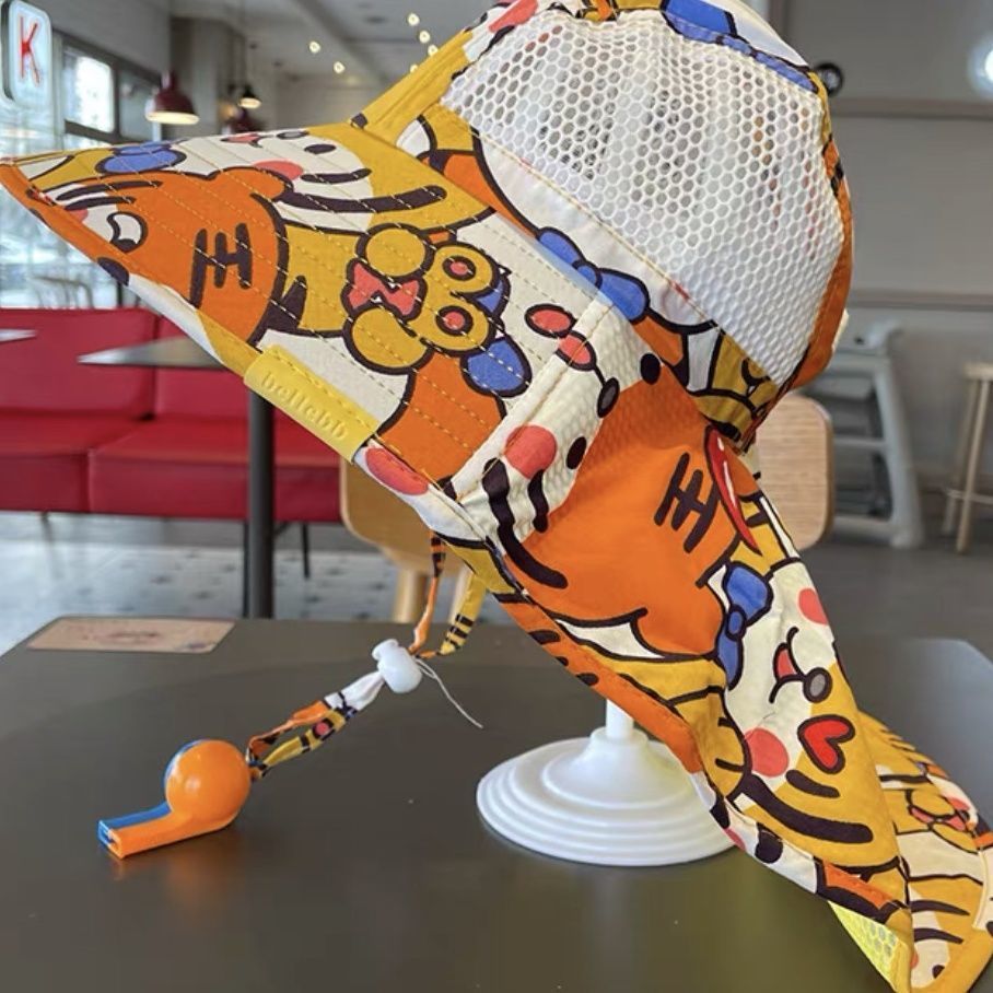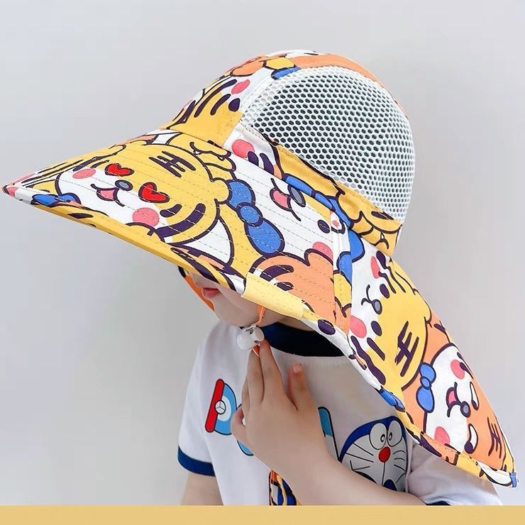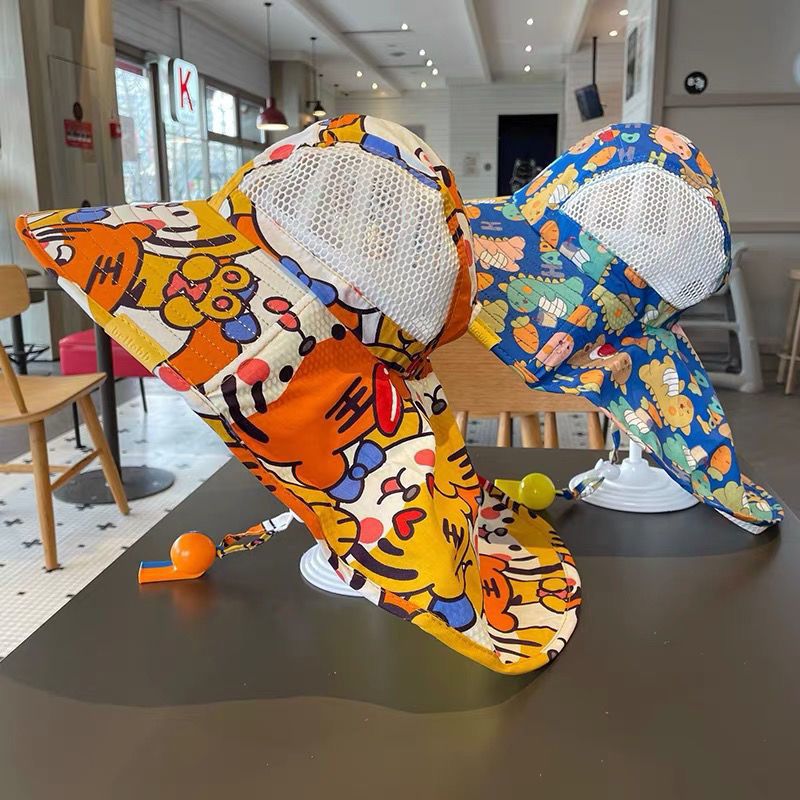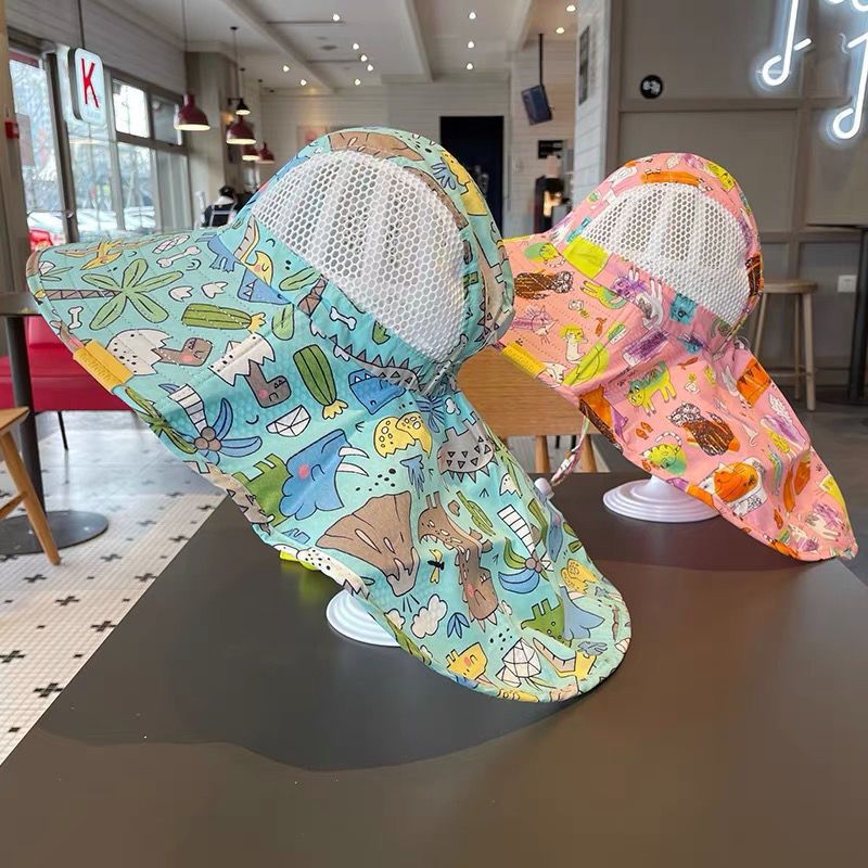 큰 챙 메쉬 통기성 어부 모자를 가진 소년과 소녀를위한 어린이 여름 태양 모자 베이비 비치 목도리 태양 모자