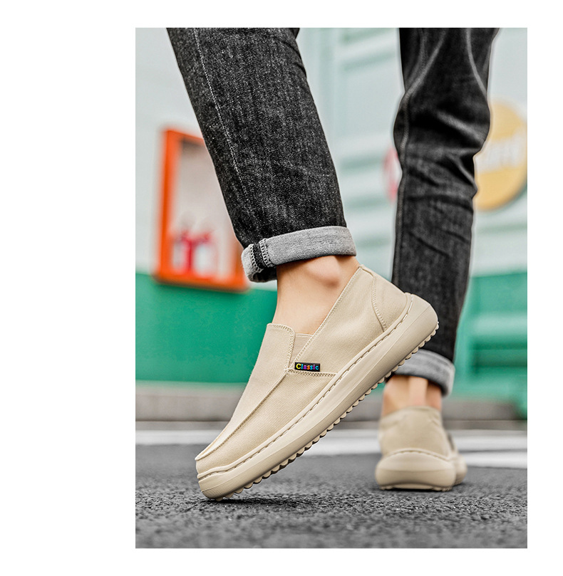 남성 신발 2025 새로운 봄 게으른 스포츠 보드 신발 남성 여름 통기성 부드러운 단독 슬립 온 캔버스 신발 편안한스토어 가기