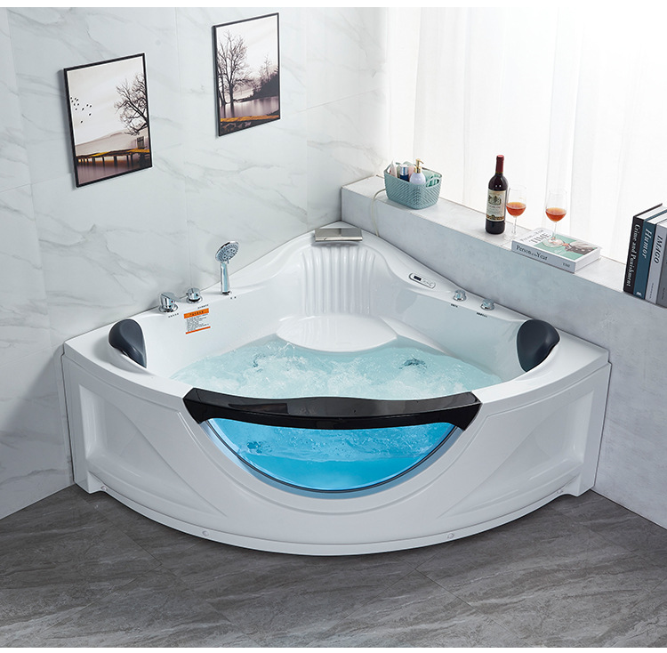 퀸 고급 가정용 성인용 부채 모양의 대형 유리 자쿠지 욕조 커플용 2 인용 재미있는 목욕 삼각형 욕조스토어 가기