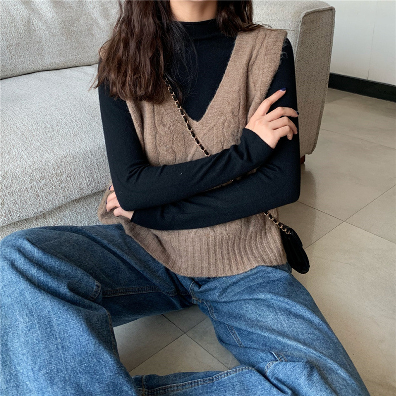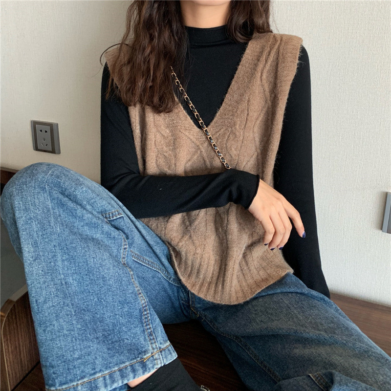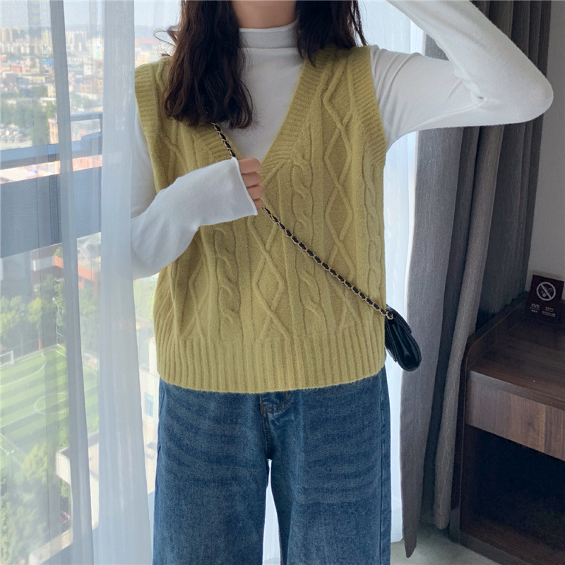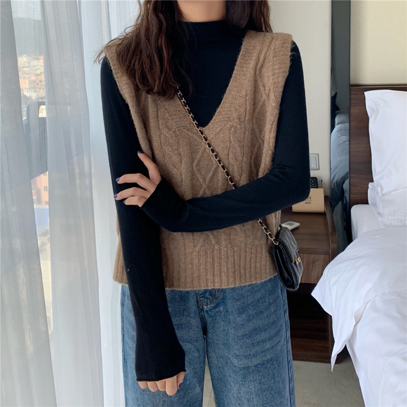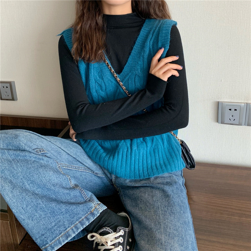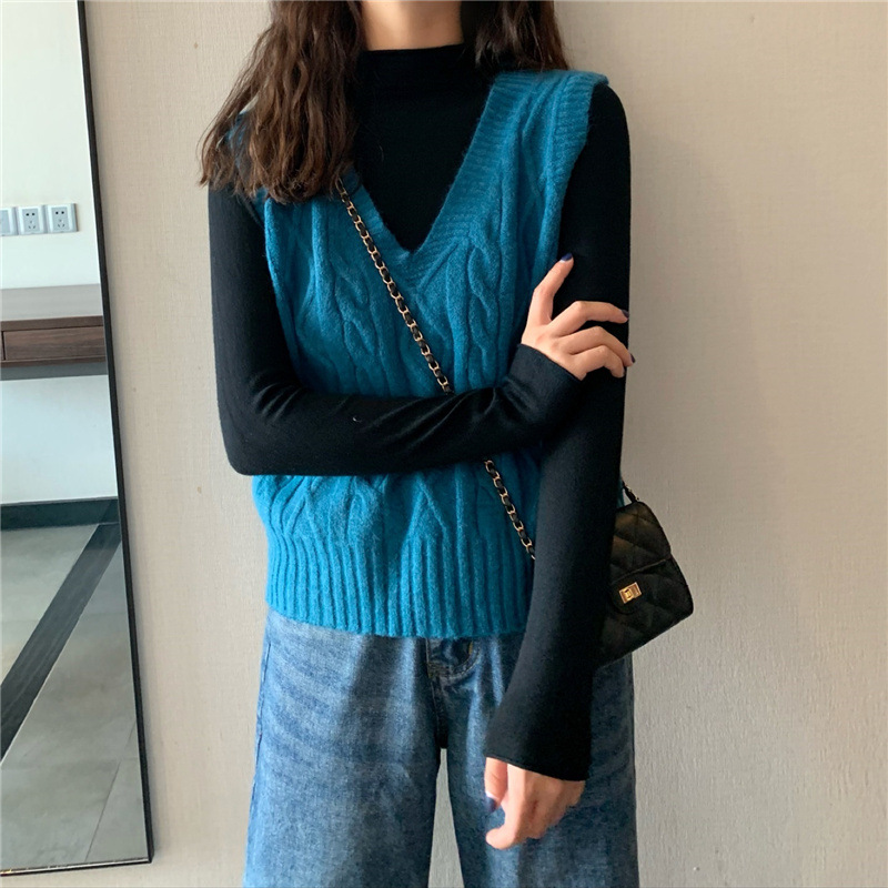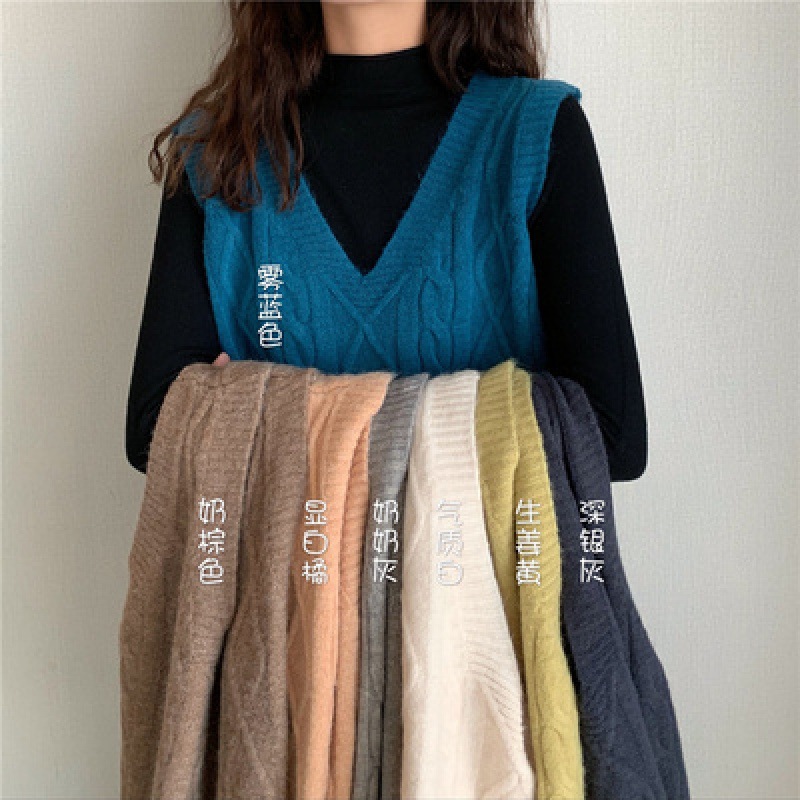 2022 가을 겨울 의류 한국식 단색 조끼 V-넥 조끼 모든 경기 간단한 풀오버 조끼 민소매 겉옷스토어 가기