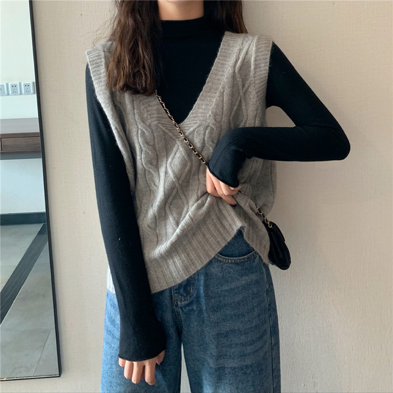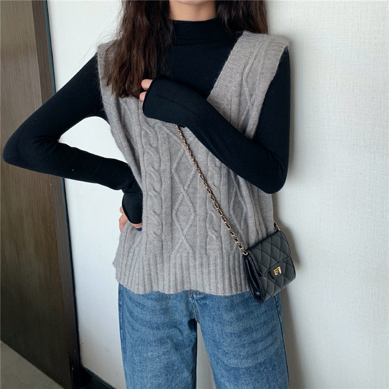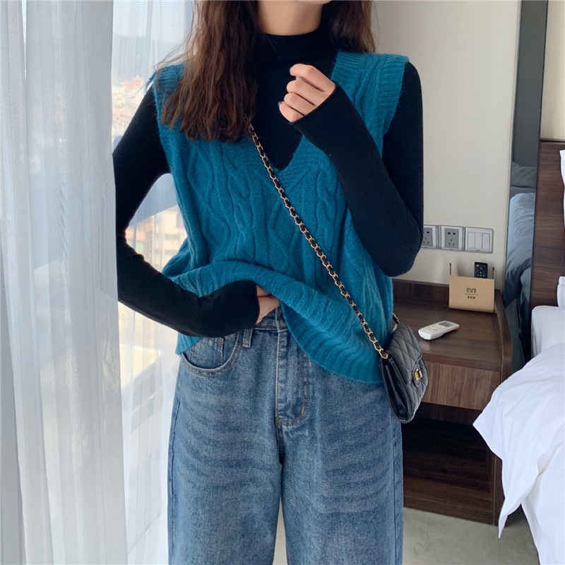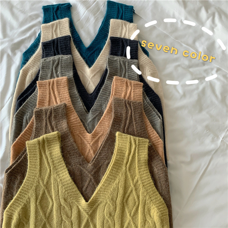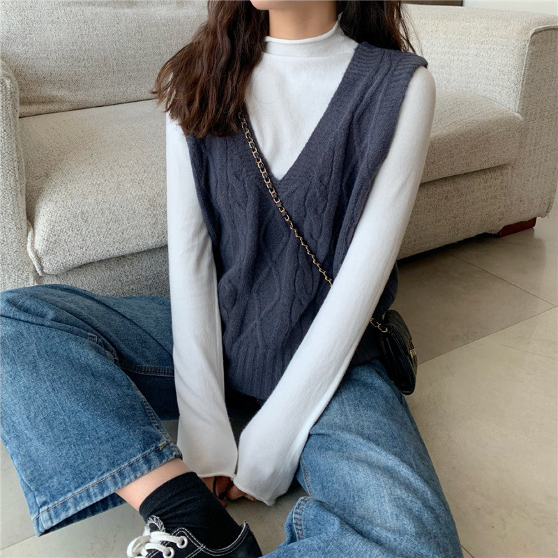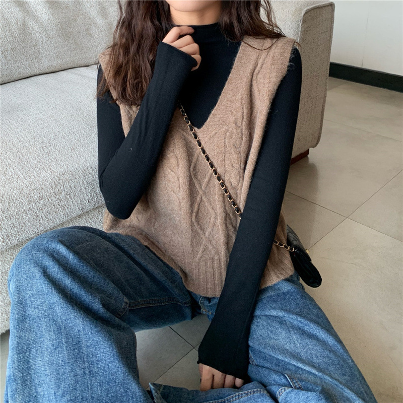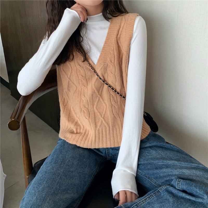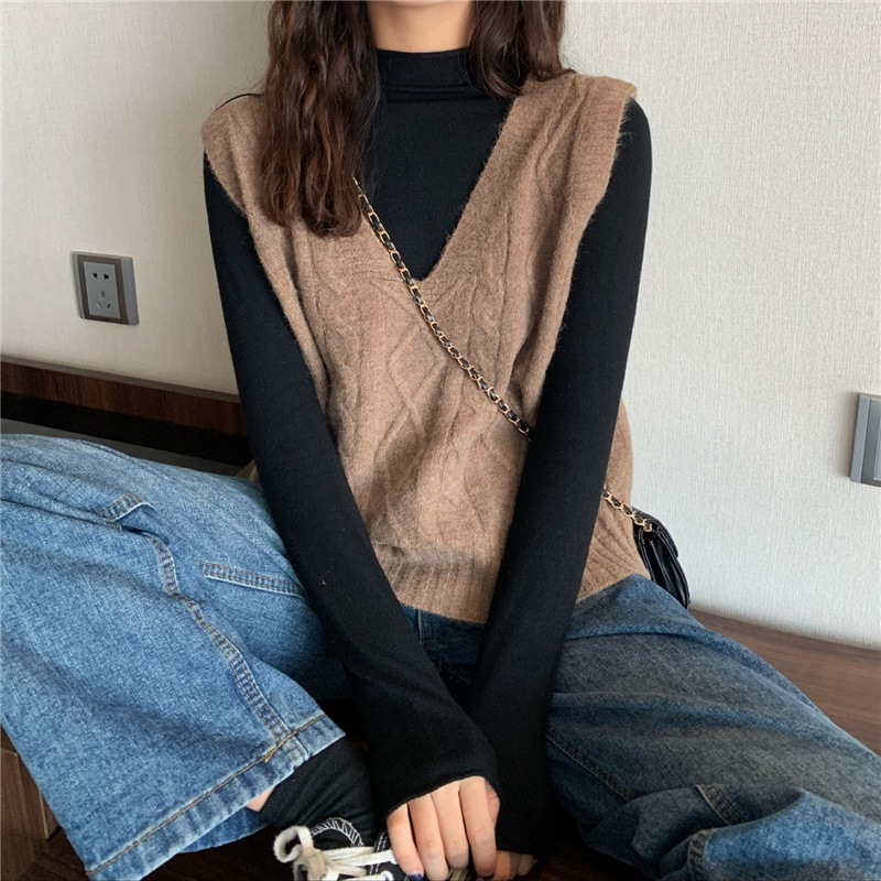 2022 가을 겨울 의류 한국식 단색 조끼 V-넥 조끼 모든 경기 간단한 풀오버 조끼 민소매 겉옷스토어 가기