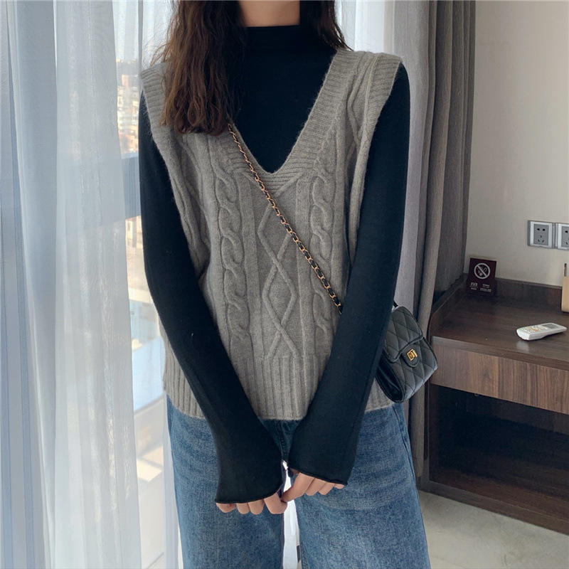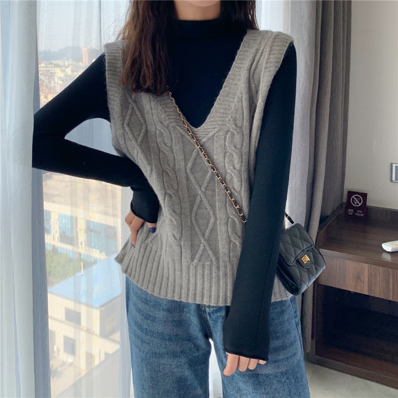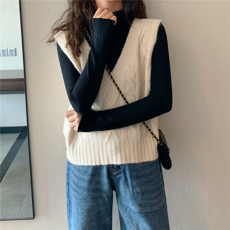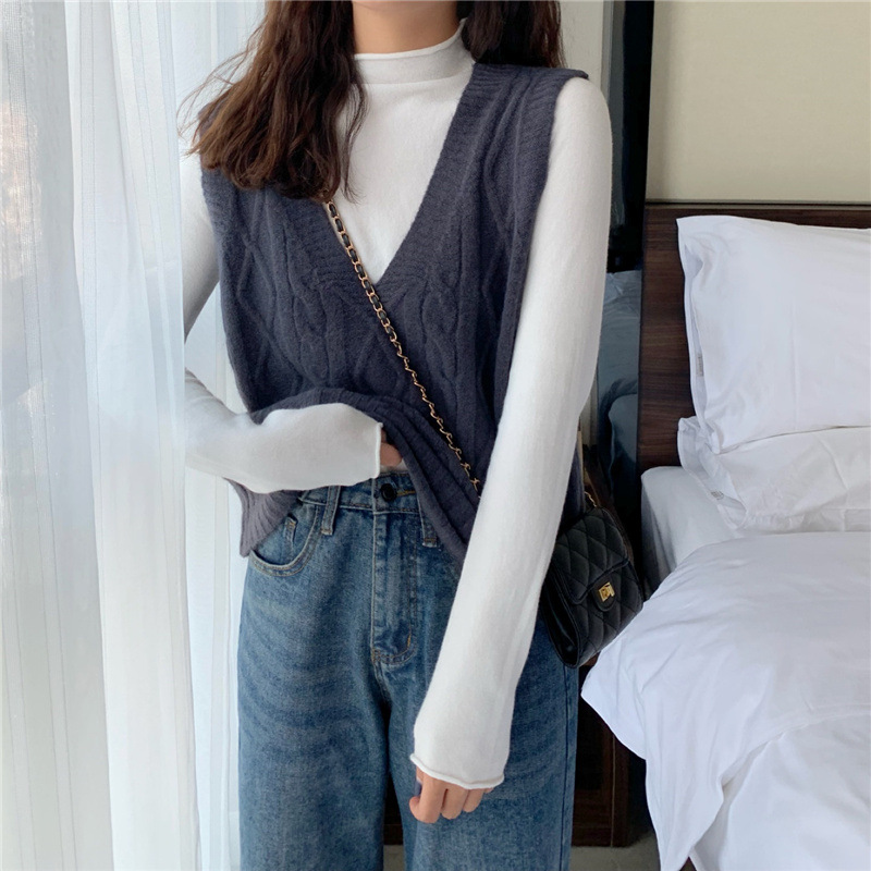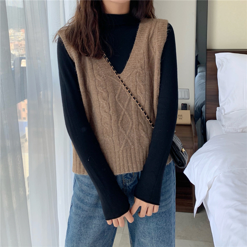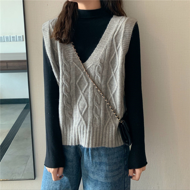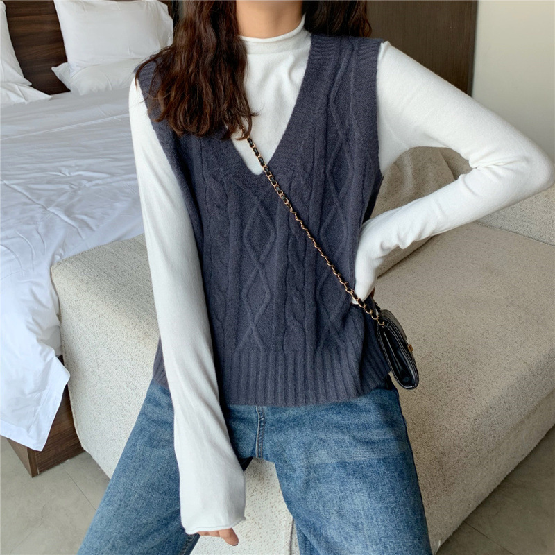 2022 가을 겨울 의류 한국식 단색 조끼 V-넥 조끼 모든 경기 간단한 풀오버 조끼 민소매 겉옷스토어 가기