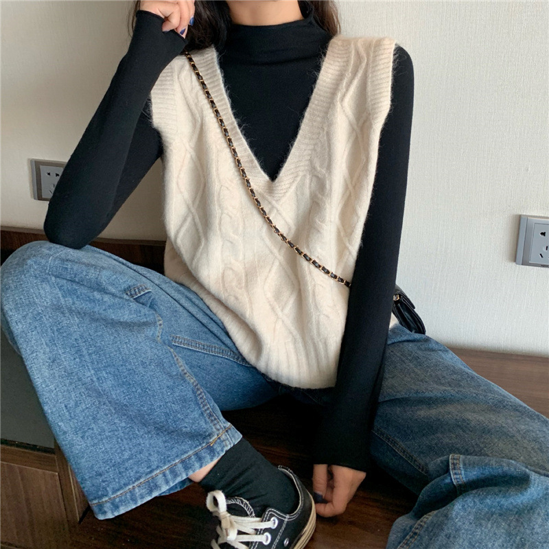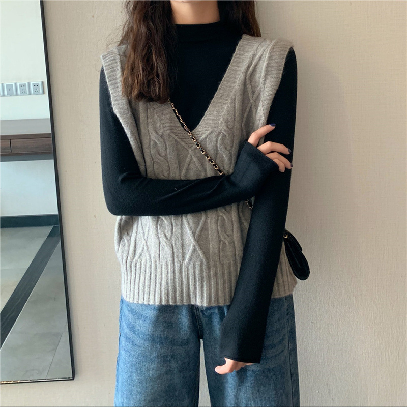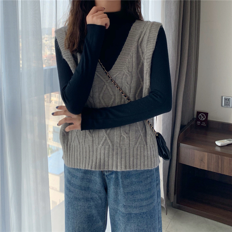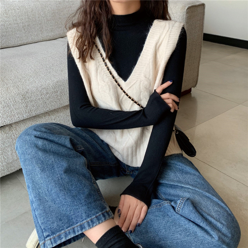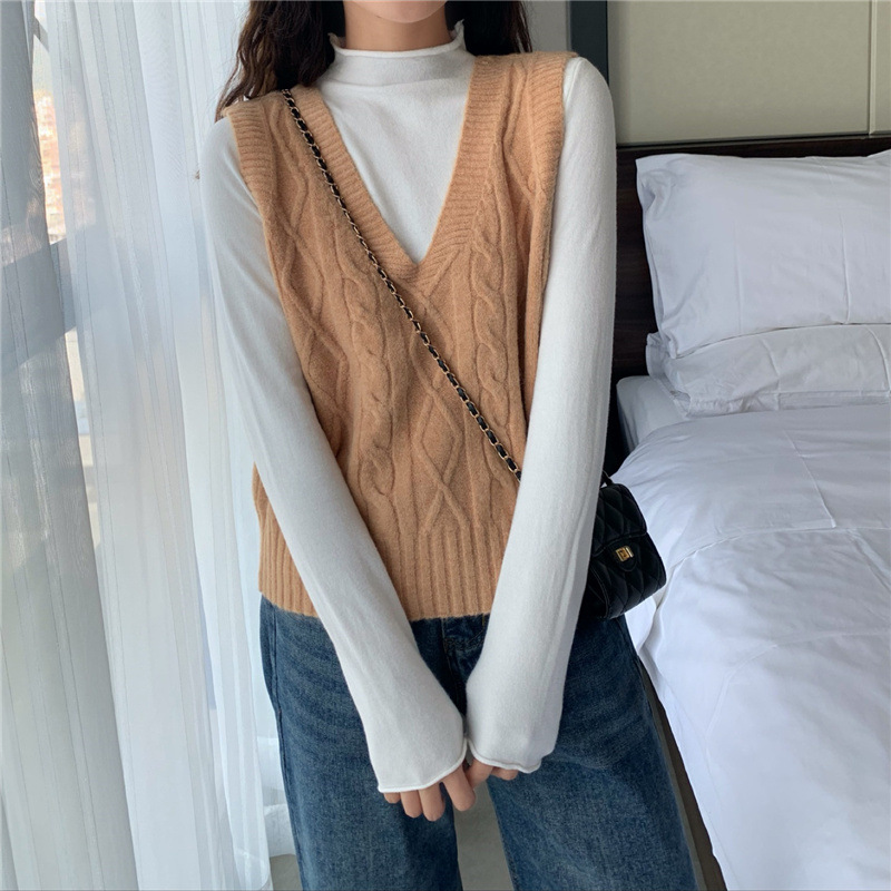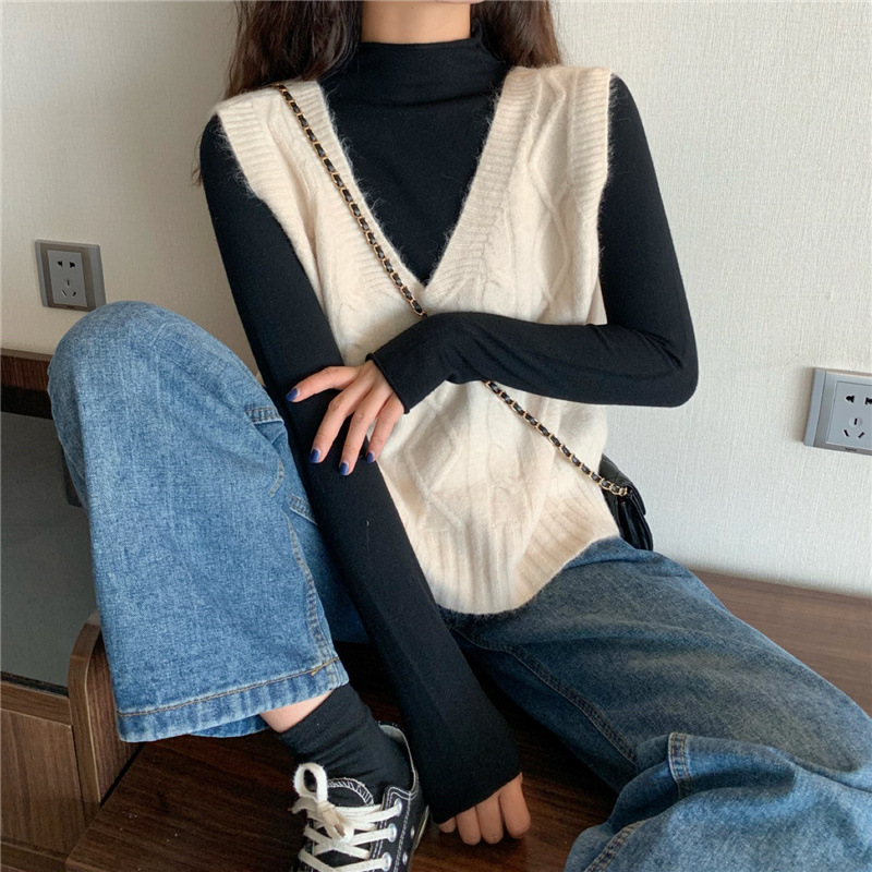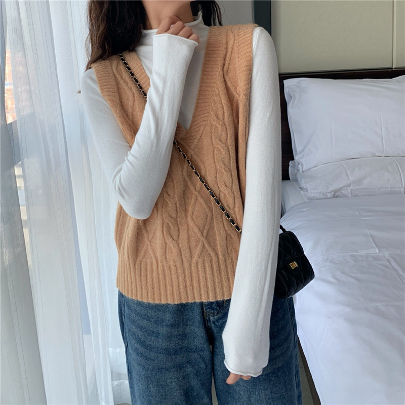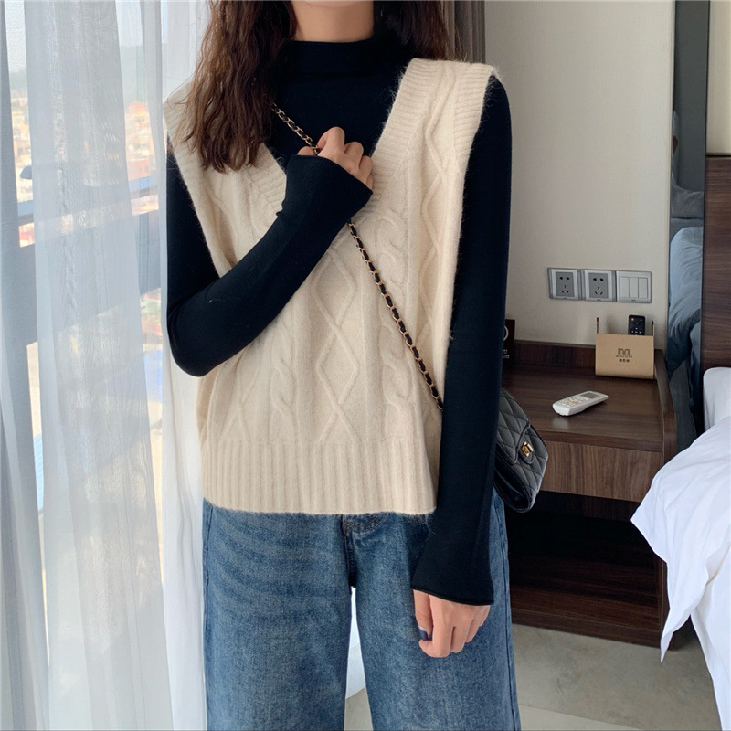 2022 가을 겨울 의류 한국식 단색 조끼 V-넥 조끼 모든 경기 간단한 풀오버 조끼 민소매 겉옷스토어 가기