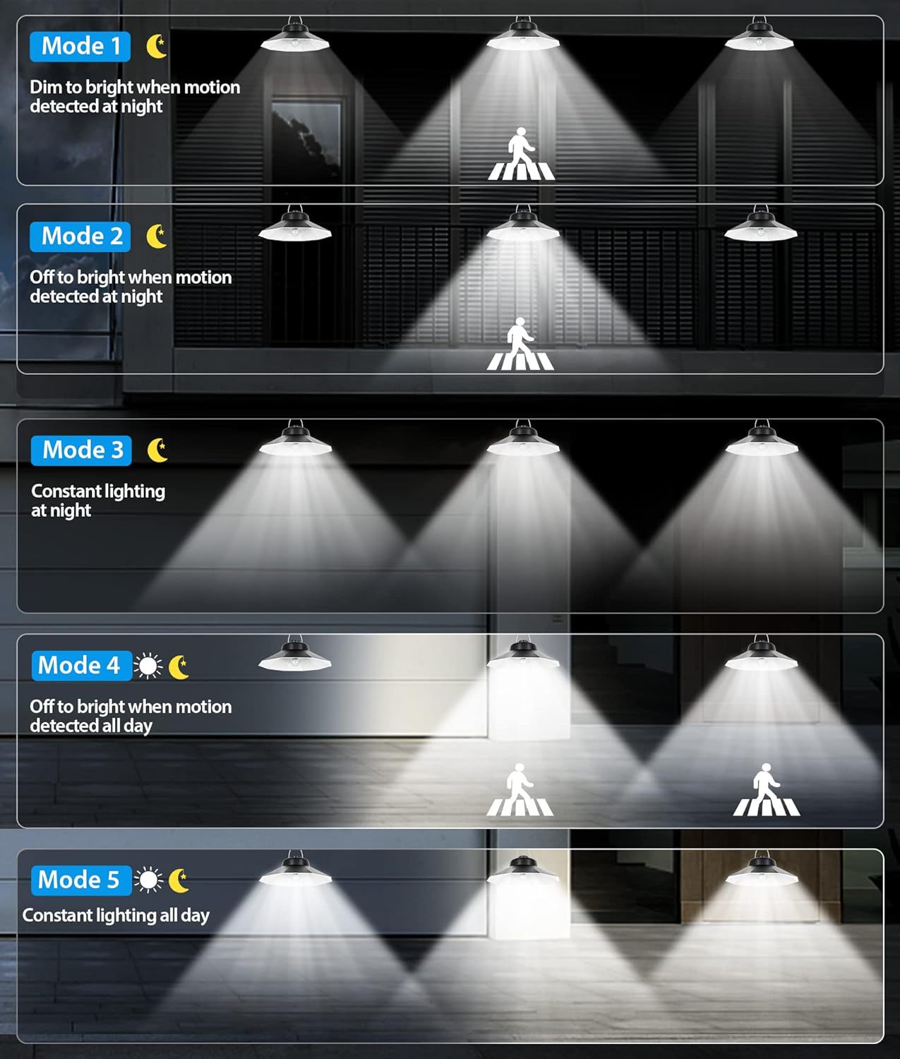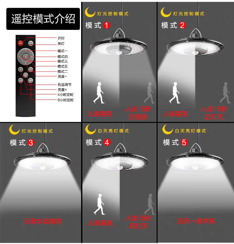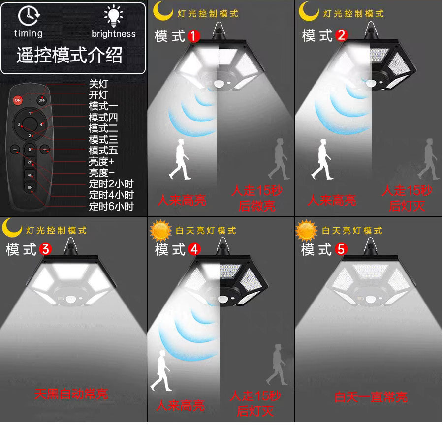 高亮度,4档调光,5种感应亮灯模式
