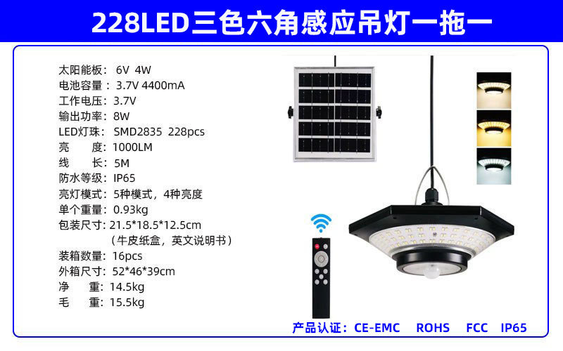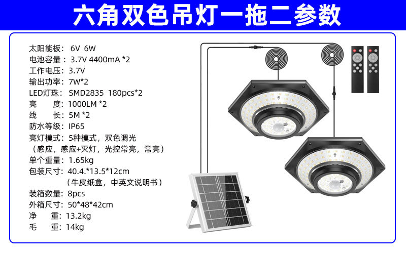 【No.3】228LED 双色六角感应吊灯(一拖一/一拖二)
