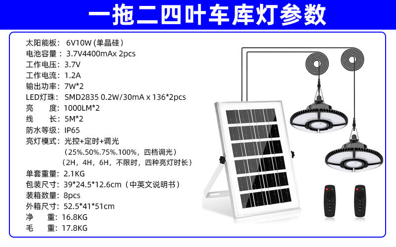 【No.7】136LED可折叠四头常亮车库灯(一拖一)