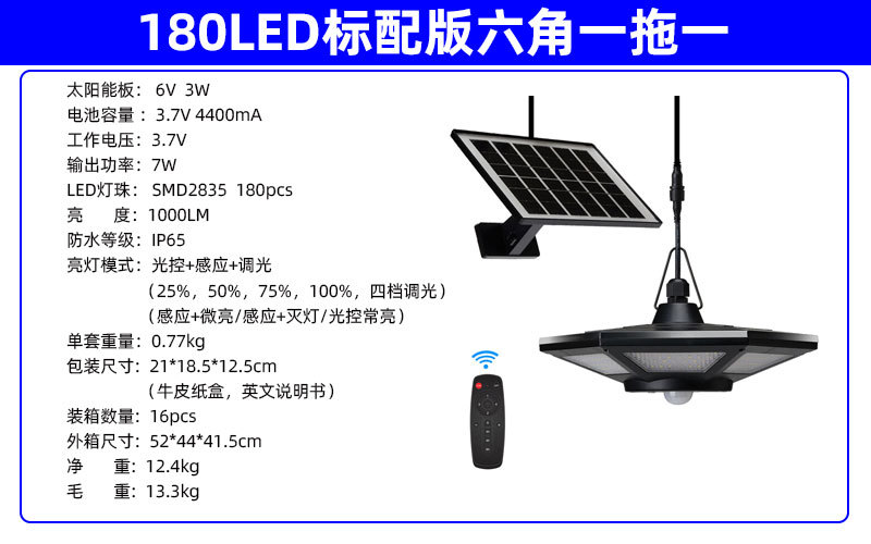 【No.1】180LED 六角感应吊灯(一拖一/一拖二)