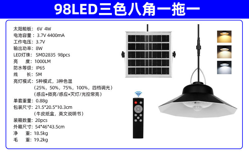 【No.5】98LED双色八角感应吊灯(一拖一/一拖二)