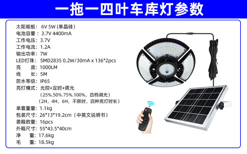 【No.2】专利产品192LED可折叠 双感应 3色 四叶车库灯(一拖一)