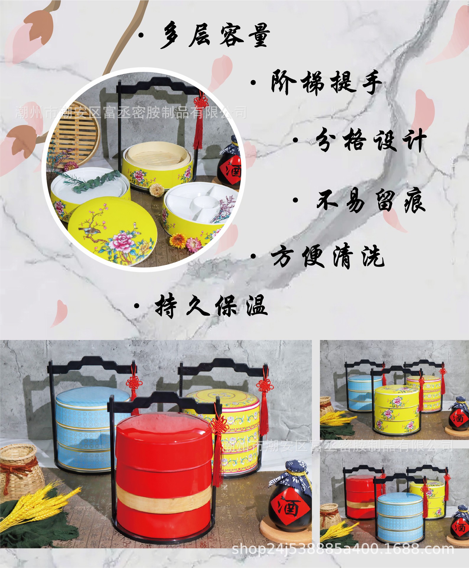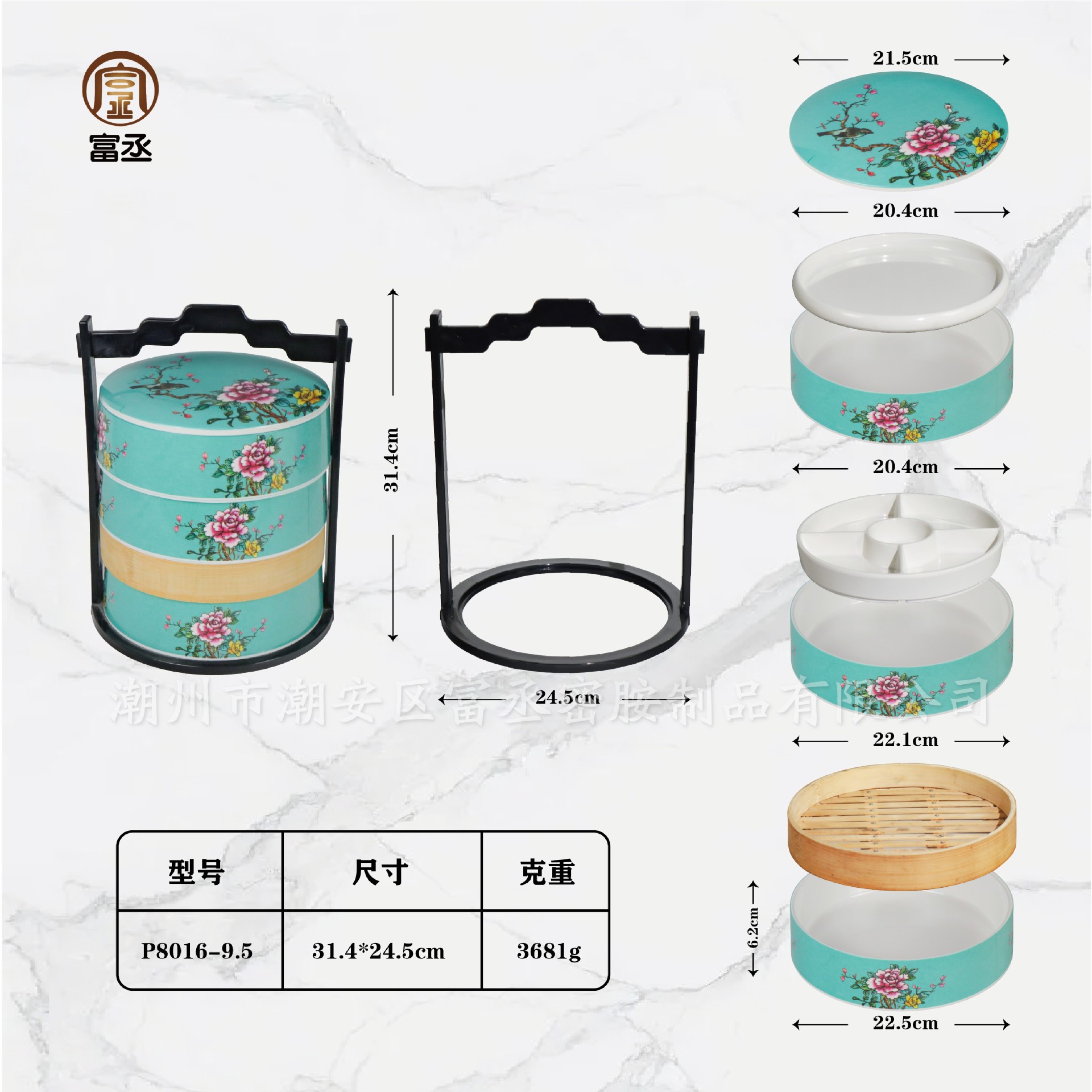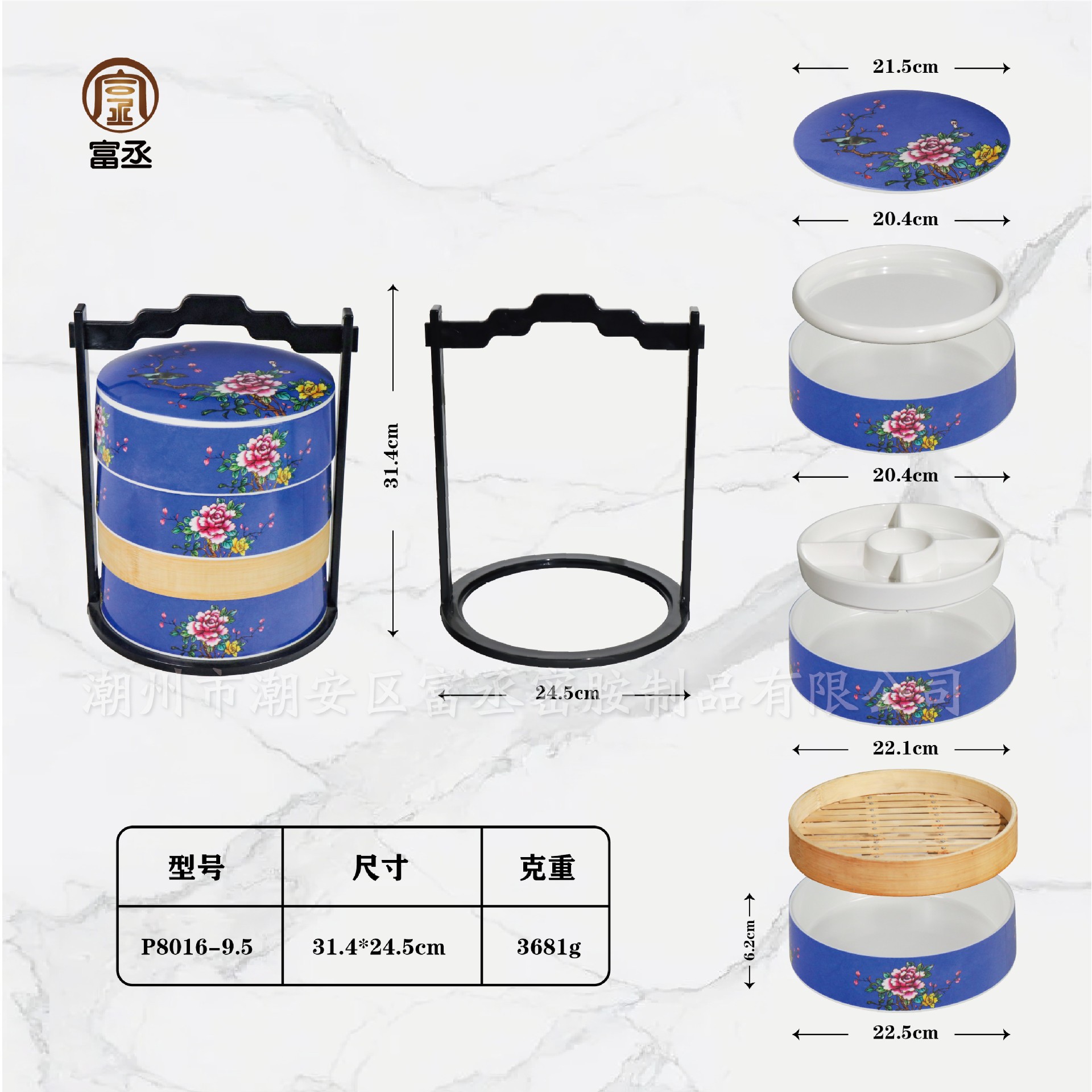 • 푸른 모란 3 층 음식 상자