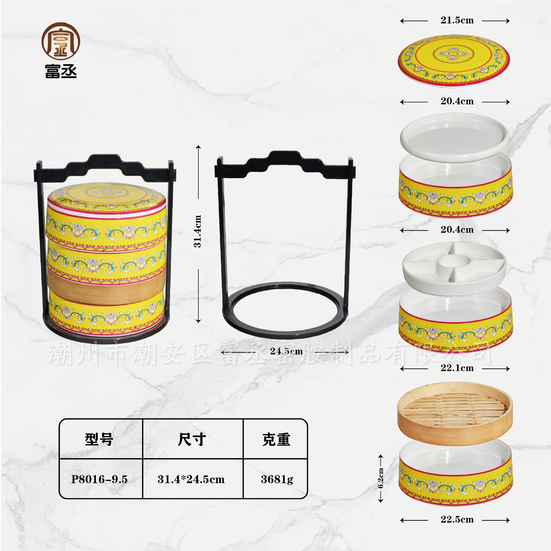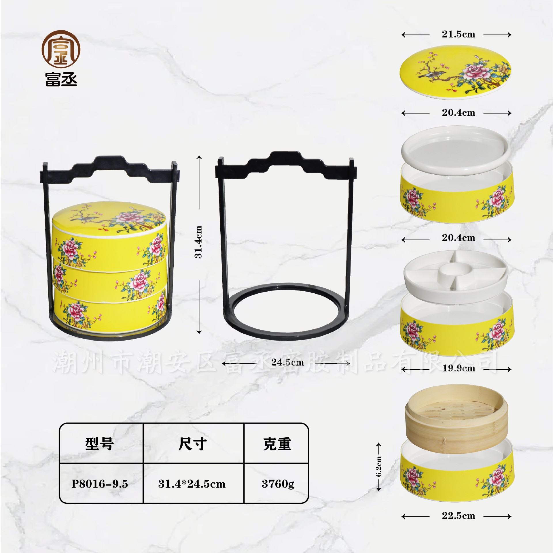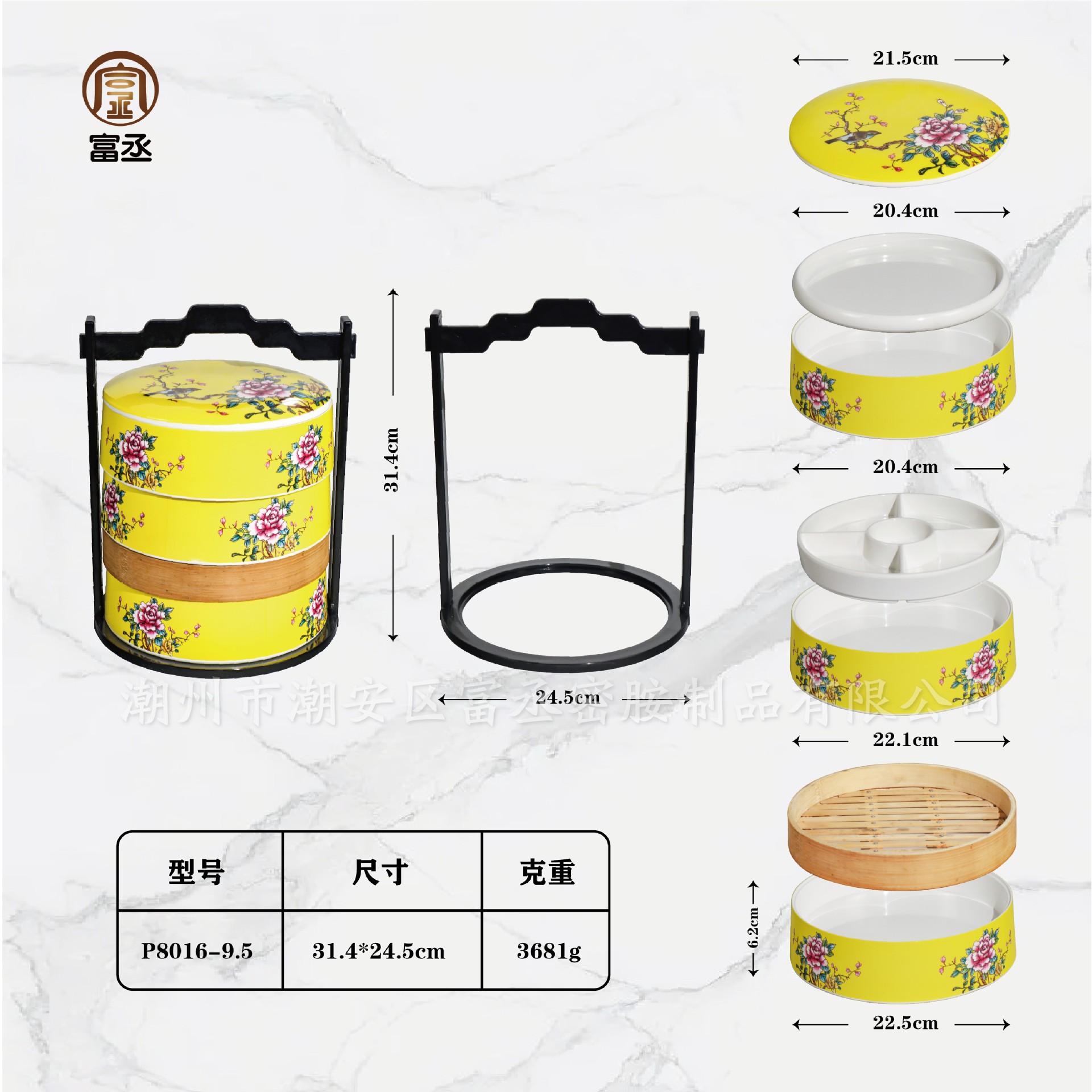 • 노란 모란 꽃 세트 (흰색 접시 + 5 그리드 접시 + 구획 증기선)