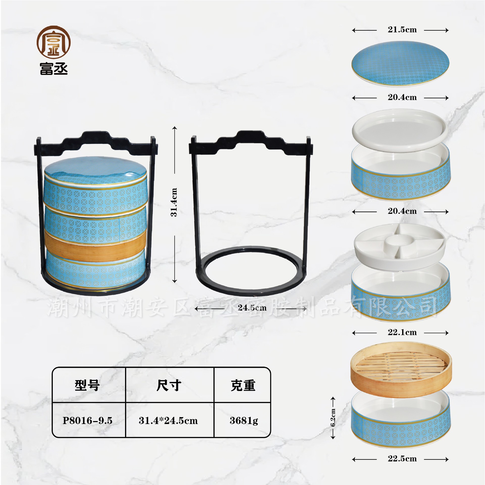 • 블루 프놈펜 3 층 식품 상자