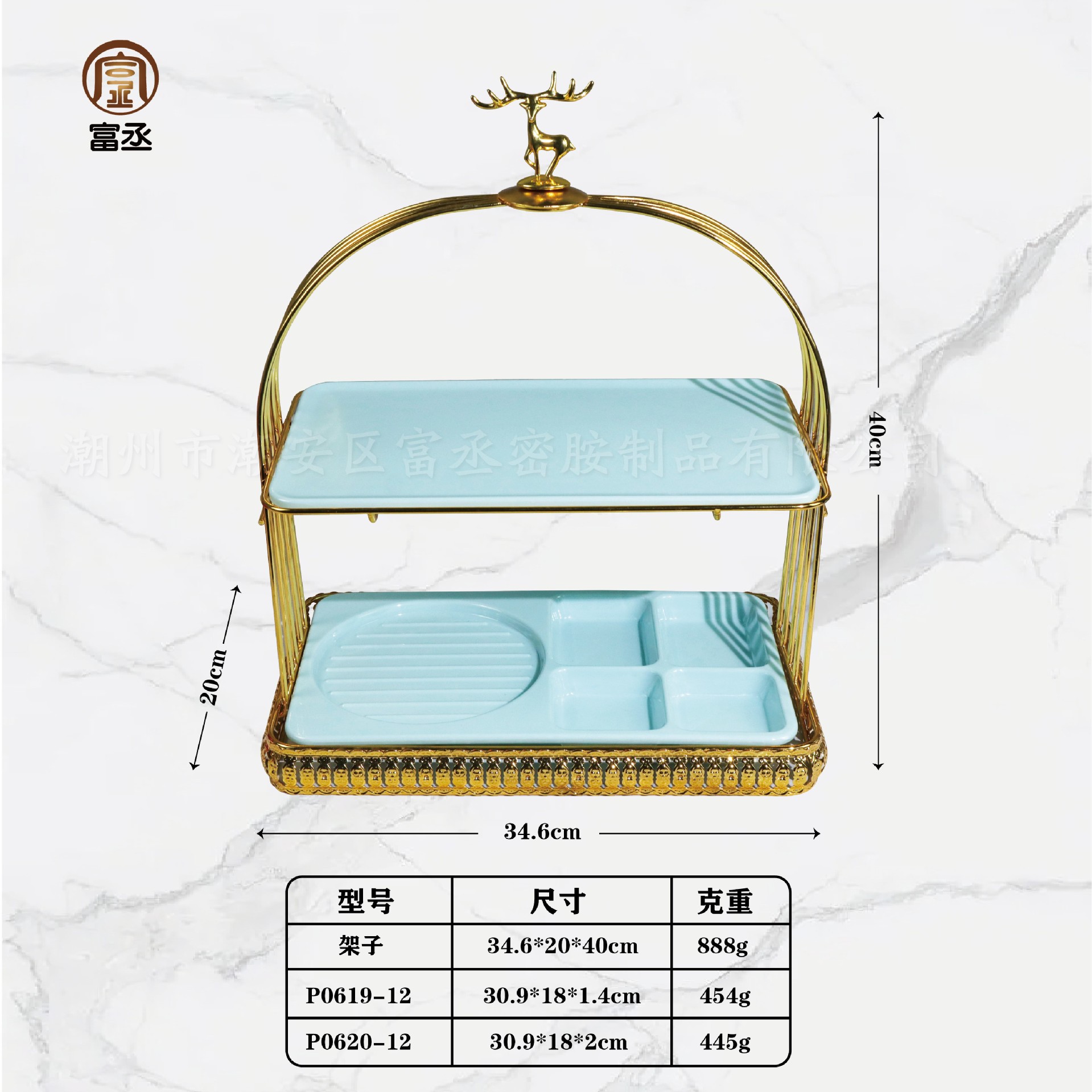 • M: 단철 손잡이 (사슴 머리) + 로스트 오리 블루 플레이트 세트