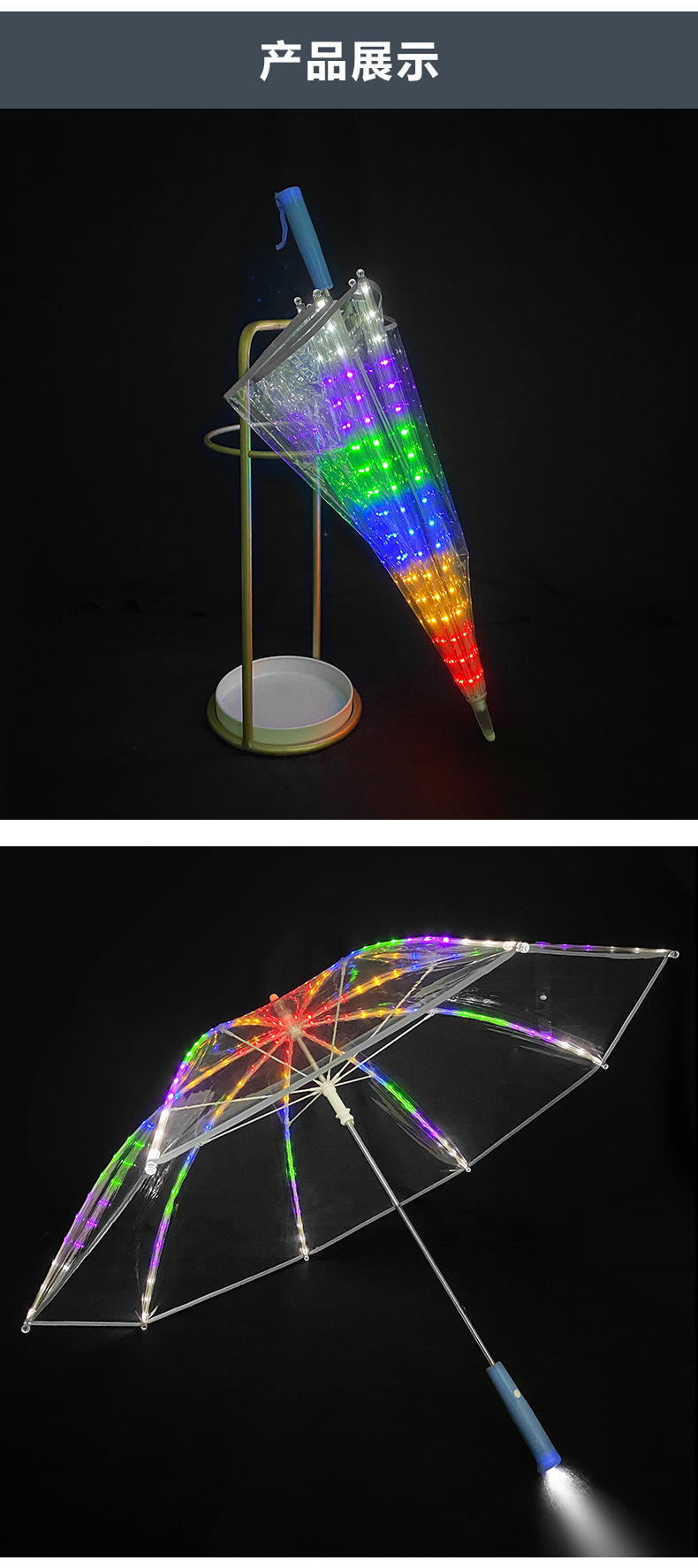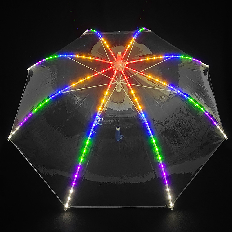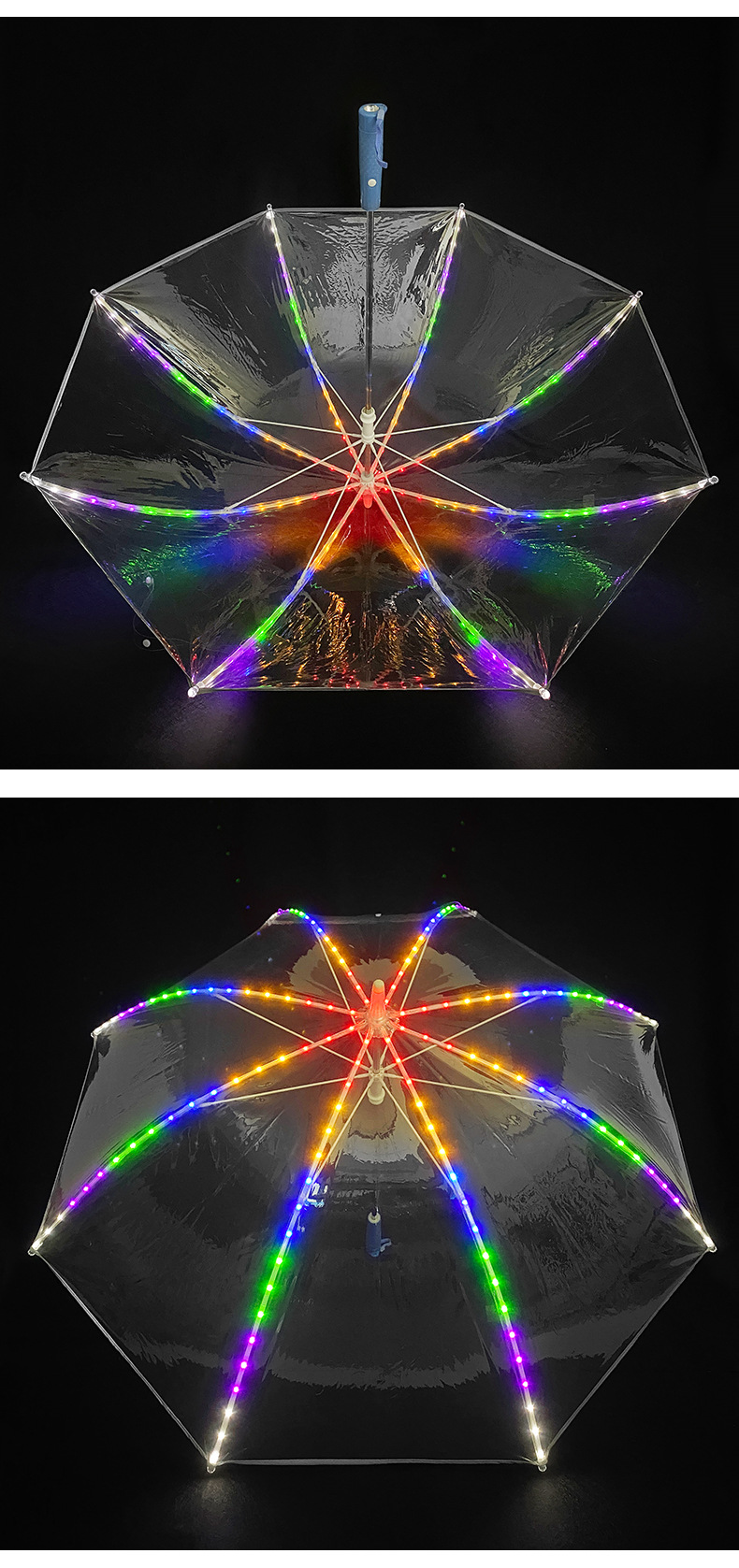 다채로운 LED 빛 우산 창조적 인 긴 손잡이 투명 직선 손잡이 손전등 우산 학생과 소녀를위한 낭만적 인 선물